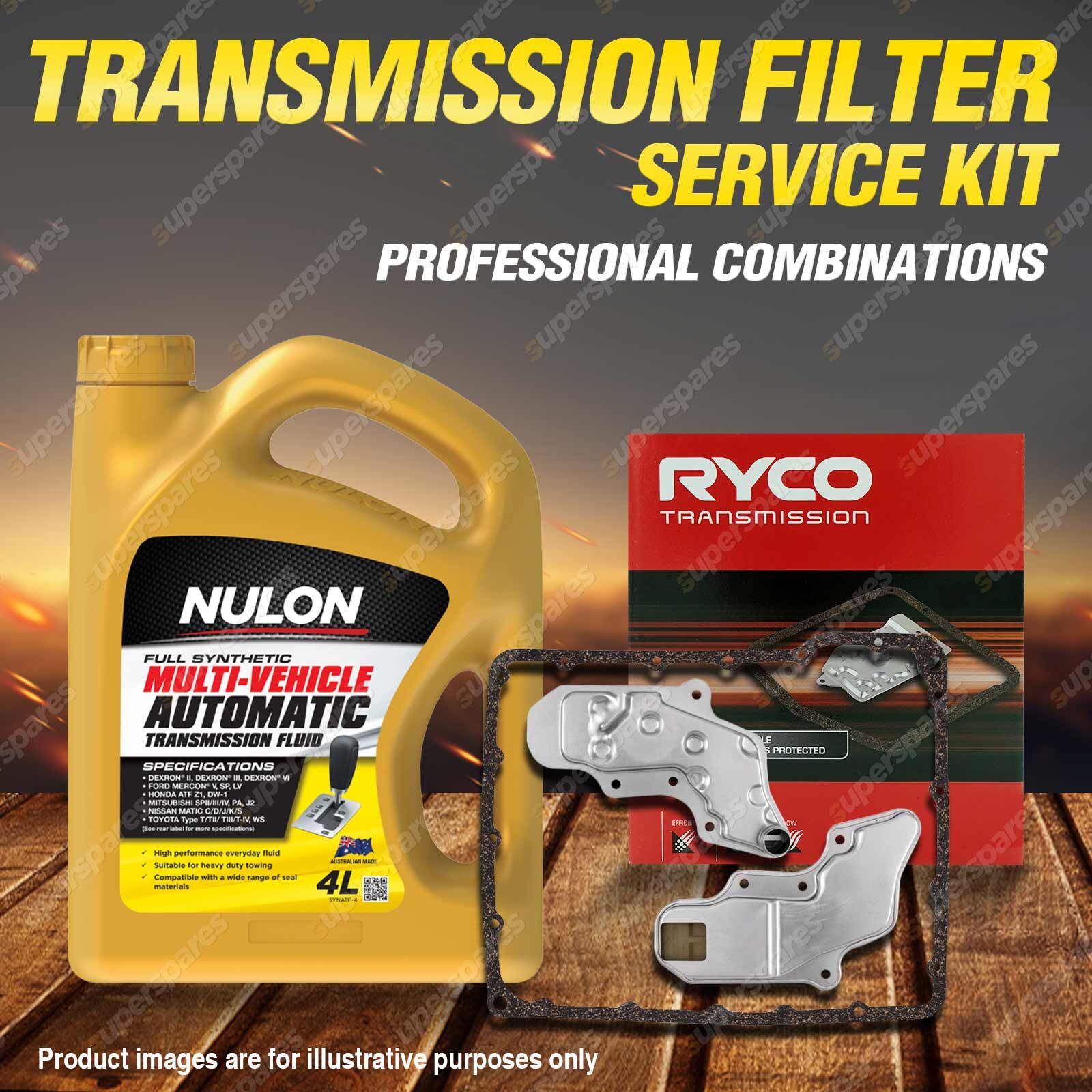 Note: eBay's compatibility table is not accurate in some cases. Please refer to the following information we have provided for you.Copyright © 2014 - 2025 Superspares. All rights reserved. Content : 1 x Ryco Transmission Filter Service Kit 1 x Nulon Full Synthetic Multi Vehicle Automatic Transmission Fluid (4L) Suit : |