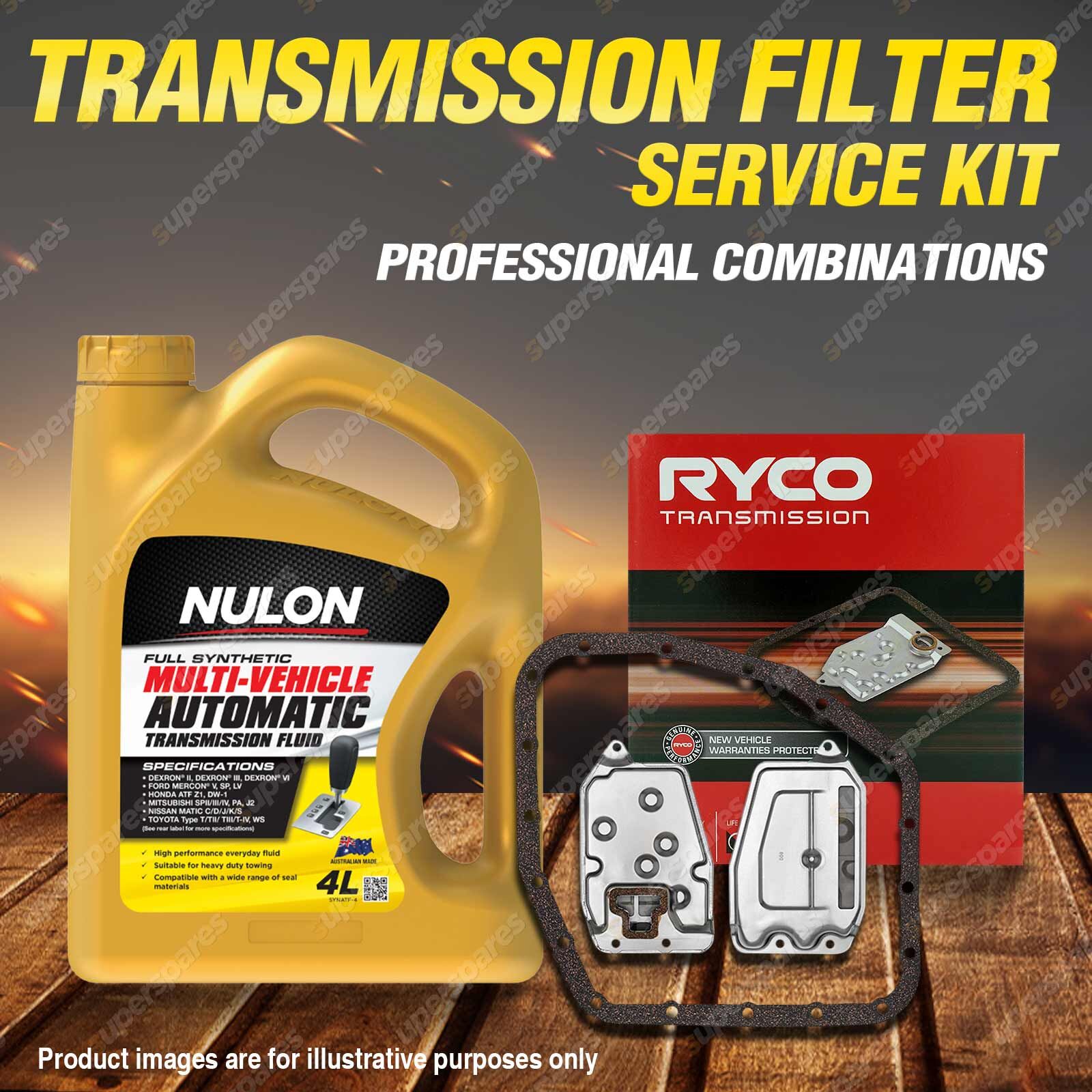 Note: eBay's compatibility table is not accurate in some cases. Please refer to the following information we have provided for you.Copyright © 2014 - 2025 Superspares. All rights reserved. Content : 1 x Ryco Transmission Filter Service Kit 1 x Nulon Full Synthetic Multi Vehicle Automatic Transmission Fluid (4L) Suit : |