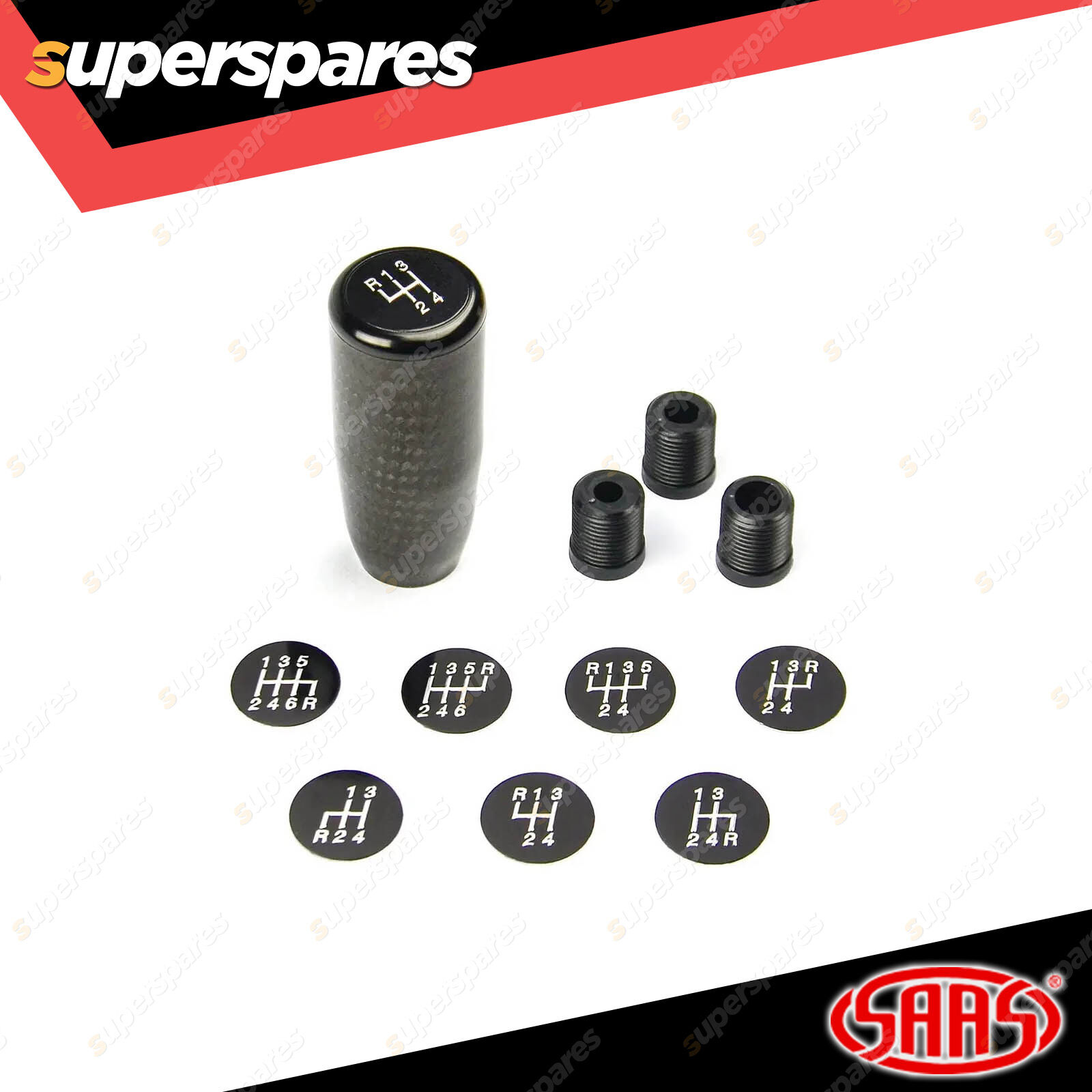 Contents : SAAS Carbon Fibre Car Gear Stick Shift Knob - Aluminium 90mm Customisable