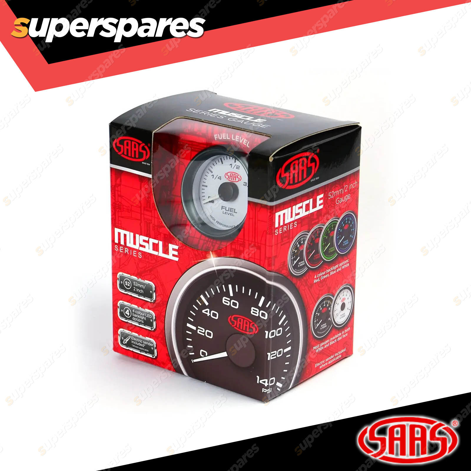 Contents : SAAS Electronic Fuel Level Gauge In Dash 52mm White Face Muscle Series I