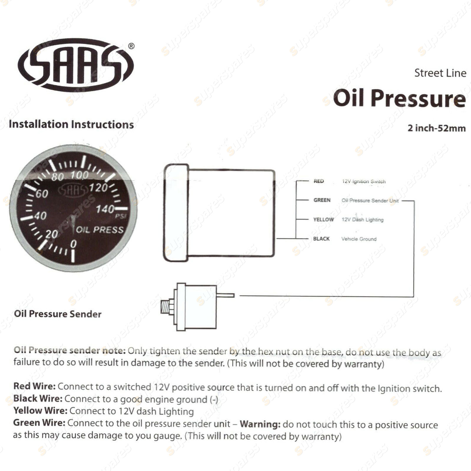 Contents : SAAS Oil Pressure Gauge 0-140 psi 52mm 2" Black Face Street Series