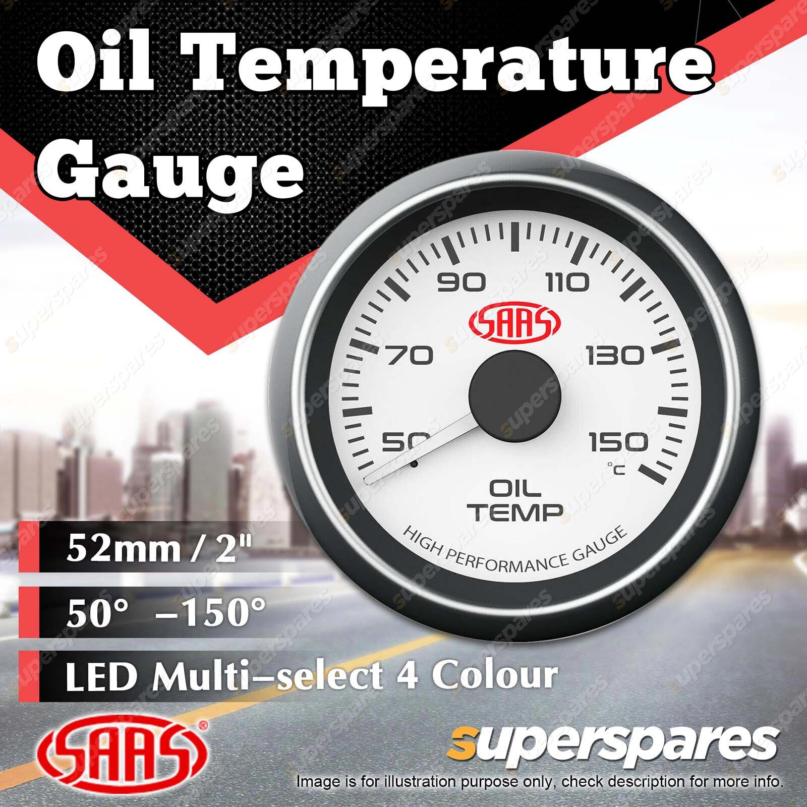 Contents : SAAS Oil Temp Gauge 50 Degree - 150 Degree 52mm White Face Muscle Series