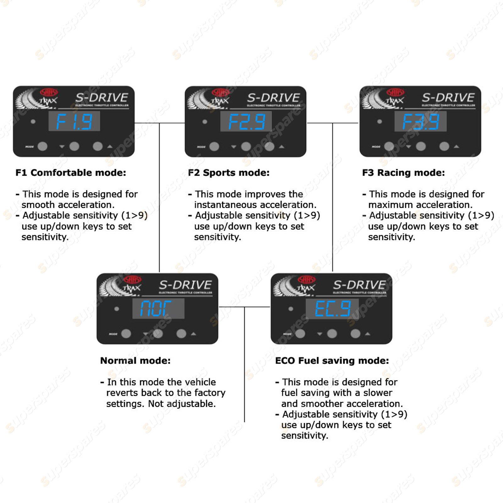 | Australia and New Zealand's best valued fully featured throttle controllers whether you're looking to improve your fuel economy, towing ability or simply to have a more responsive throttle feel, the Trax by SAAS SAAS-DRIVE electronic throttle controller is about the best bang-for-buck accessory you can find. Suitable for a range of 4WD 4X4, performance and passenger vehicles. |