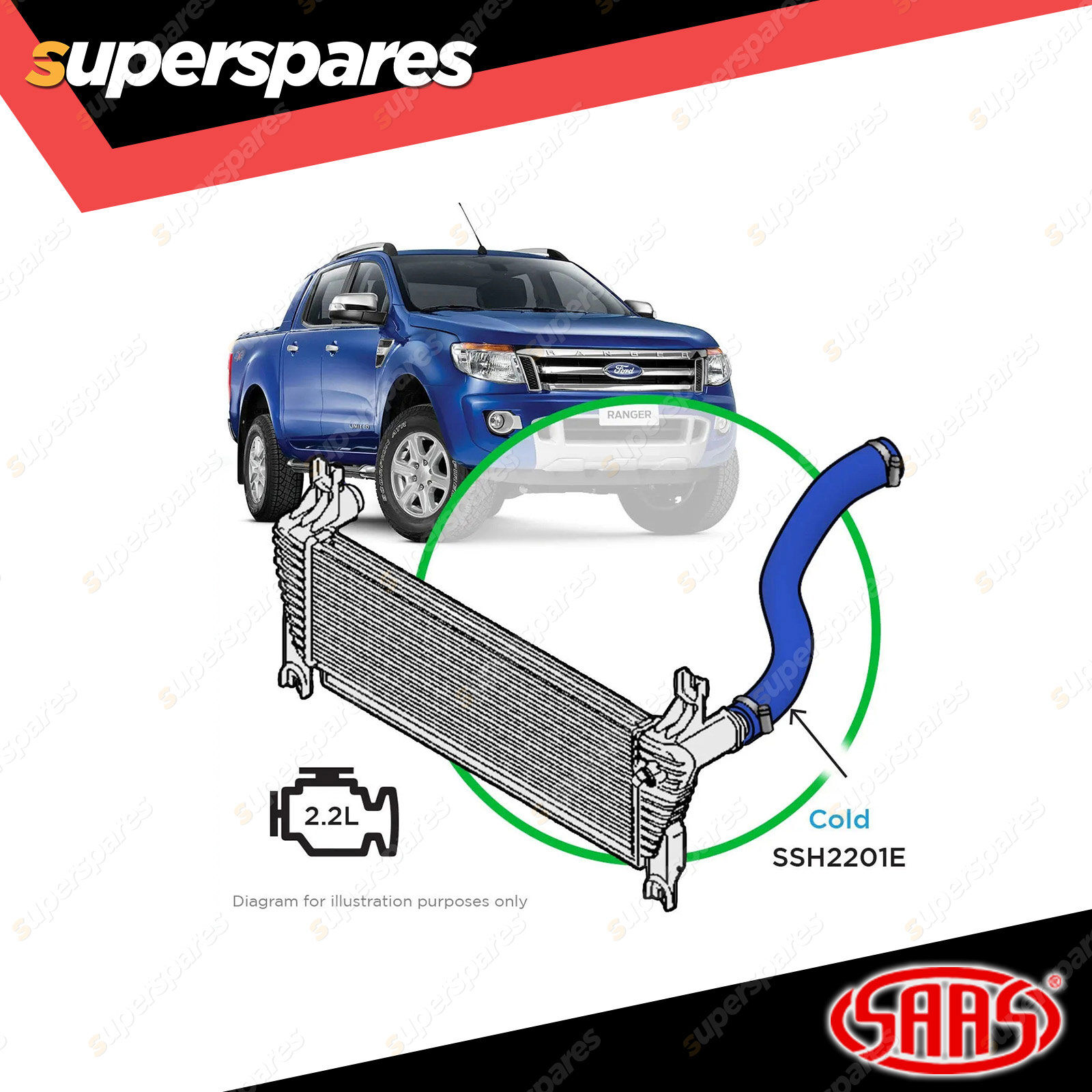 The SAAS SSH2201E is designed to replace the factory cold side hose assembly with an upgraded fluorosilicone coated silicone hose. This makes the OE style rubber pipe obsolete and reduces a possible point of failure.