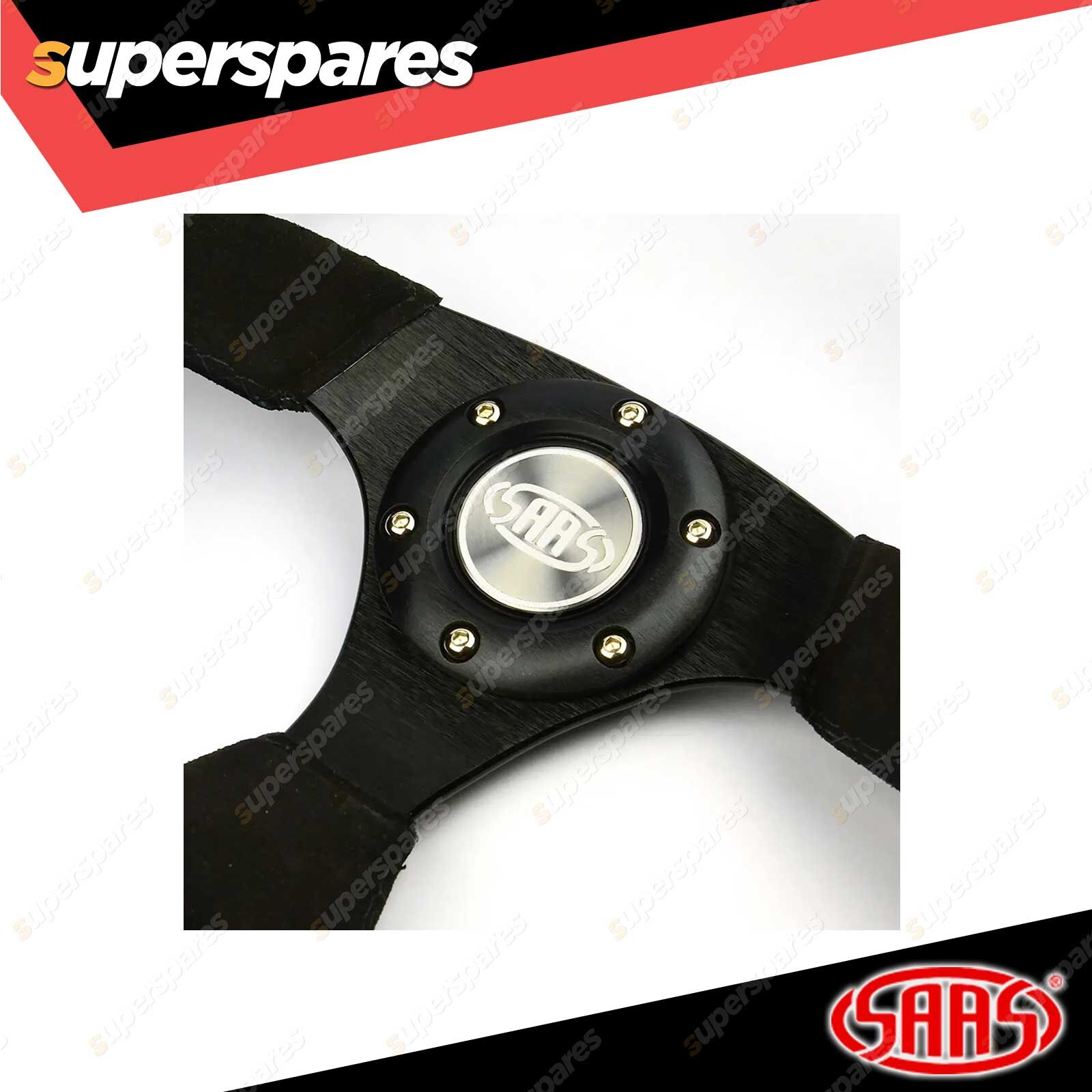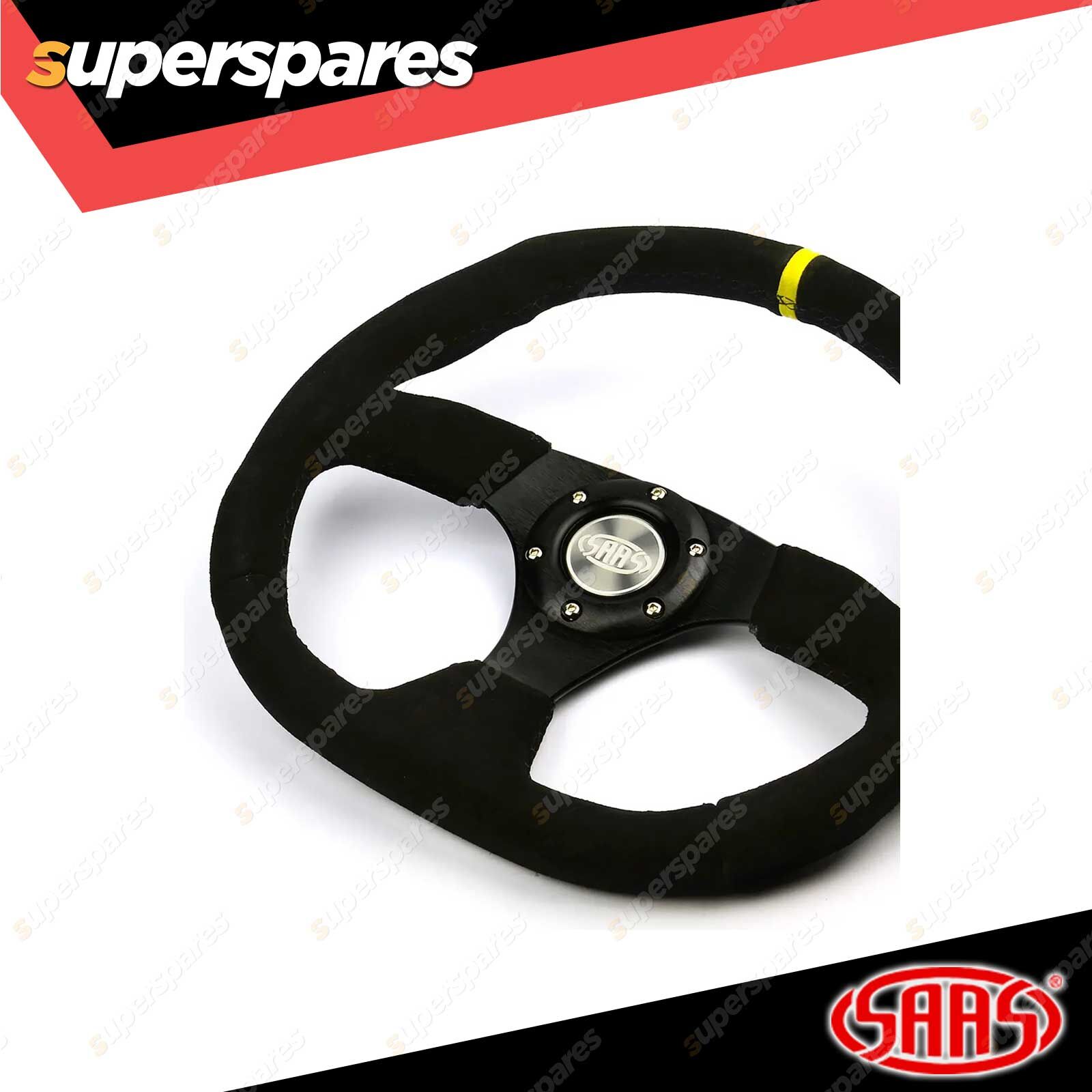 Styled in grippy suede finish, the SAAS drift wheels capture the essence of the drift scene. A super shallow spoke and flat bottom grip shout "Ready to attack!!" - the wheel has a fast and furious feel and the contoured rim is perfect for quick flicks and changes of direction. Bring it back to centre with a glance at the top of grip indicator. The perfect statement and ADR complied when fitted with an approved SAAS Boss kit.