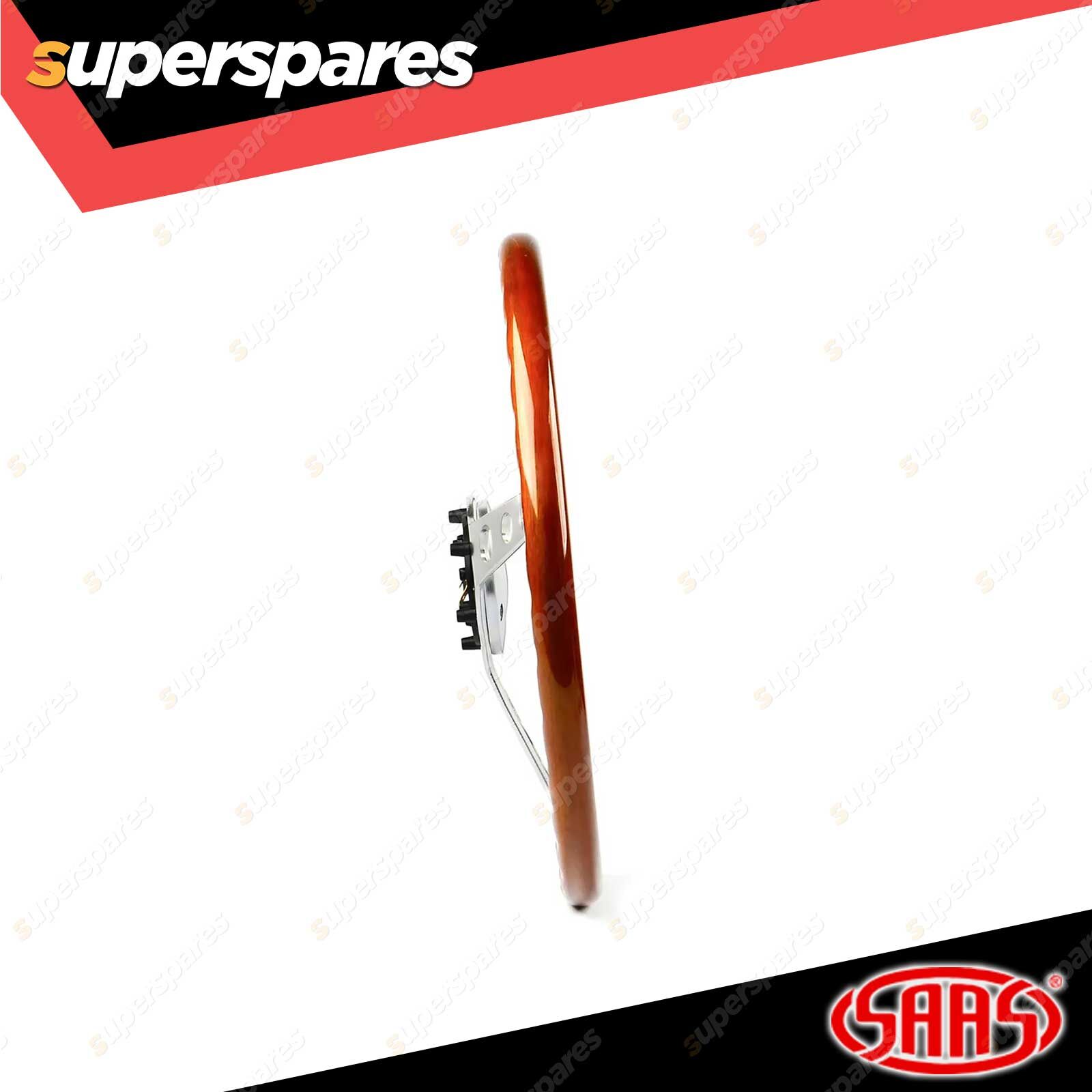 This beautifully crafted 15" SAAS woodgrain steering wheel will give your pride and joy the ultimate classic look. Featuring laminated wood finish surrounding three brushed alloy spokes, this steering wheel will be the centerpiece of your interior.