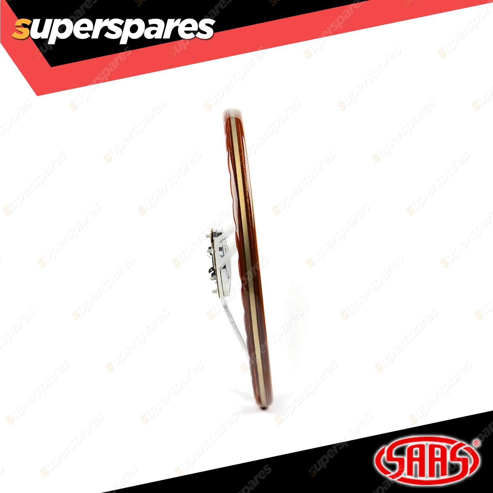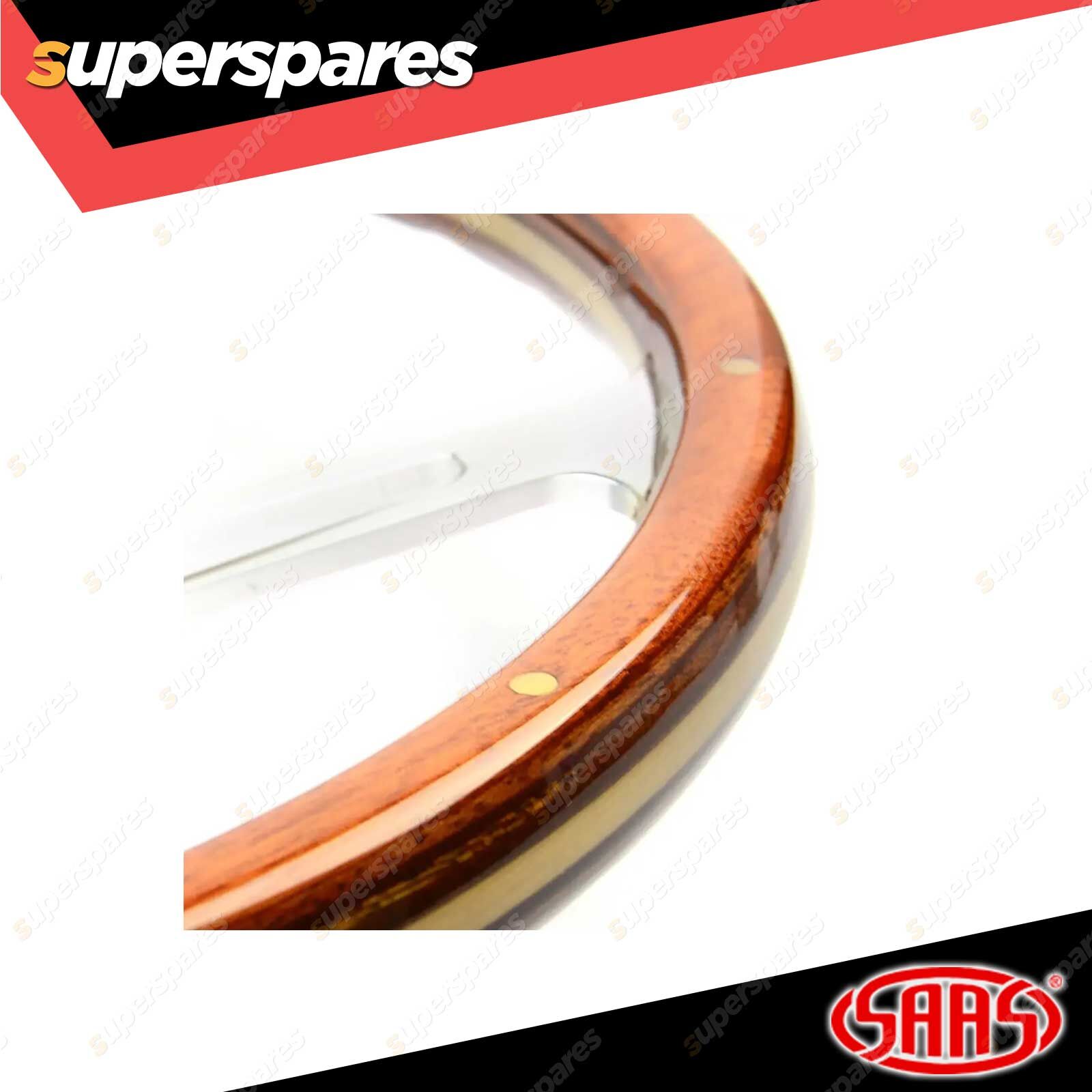This beautifully crafted 15" SAAS woodgrain steering wheel will give your pride and joy the ultimate classic look. Featuring laminated wood finish surrounding three polished alloy spokes, this steering wheel will be the centerpiece of your interior.