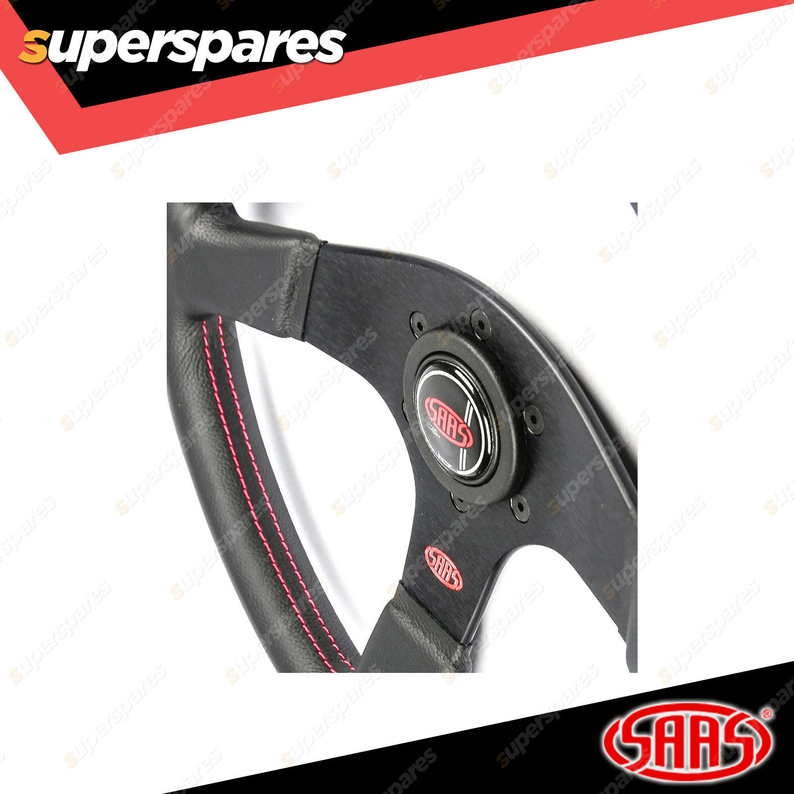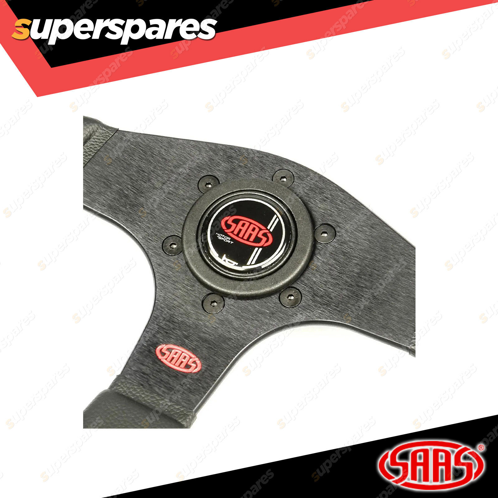 All SAAS Italian made wheels are supplied with a horn button featuring the SAAS Motorsport logo and include mounting hardware to adapt the wheel to any SAAS boss kit.