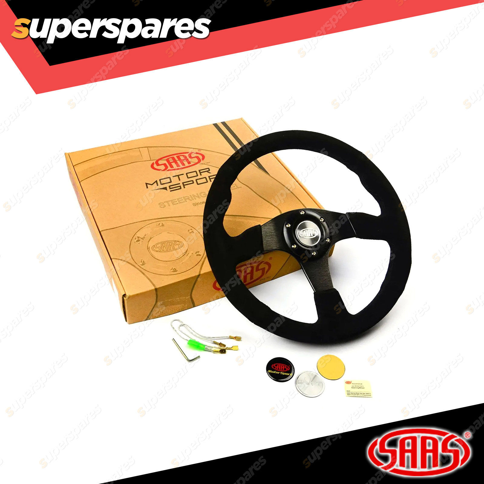 Check out the SAAS MotorSport 14" suede steering wheel, offering a comfortable grip and black alloy spoke finish. This versatile and stylish black wheel will compliment any interior.