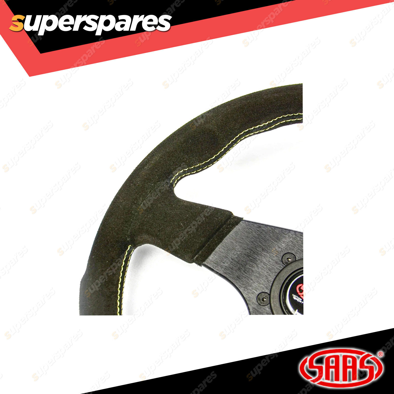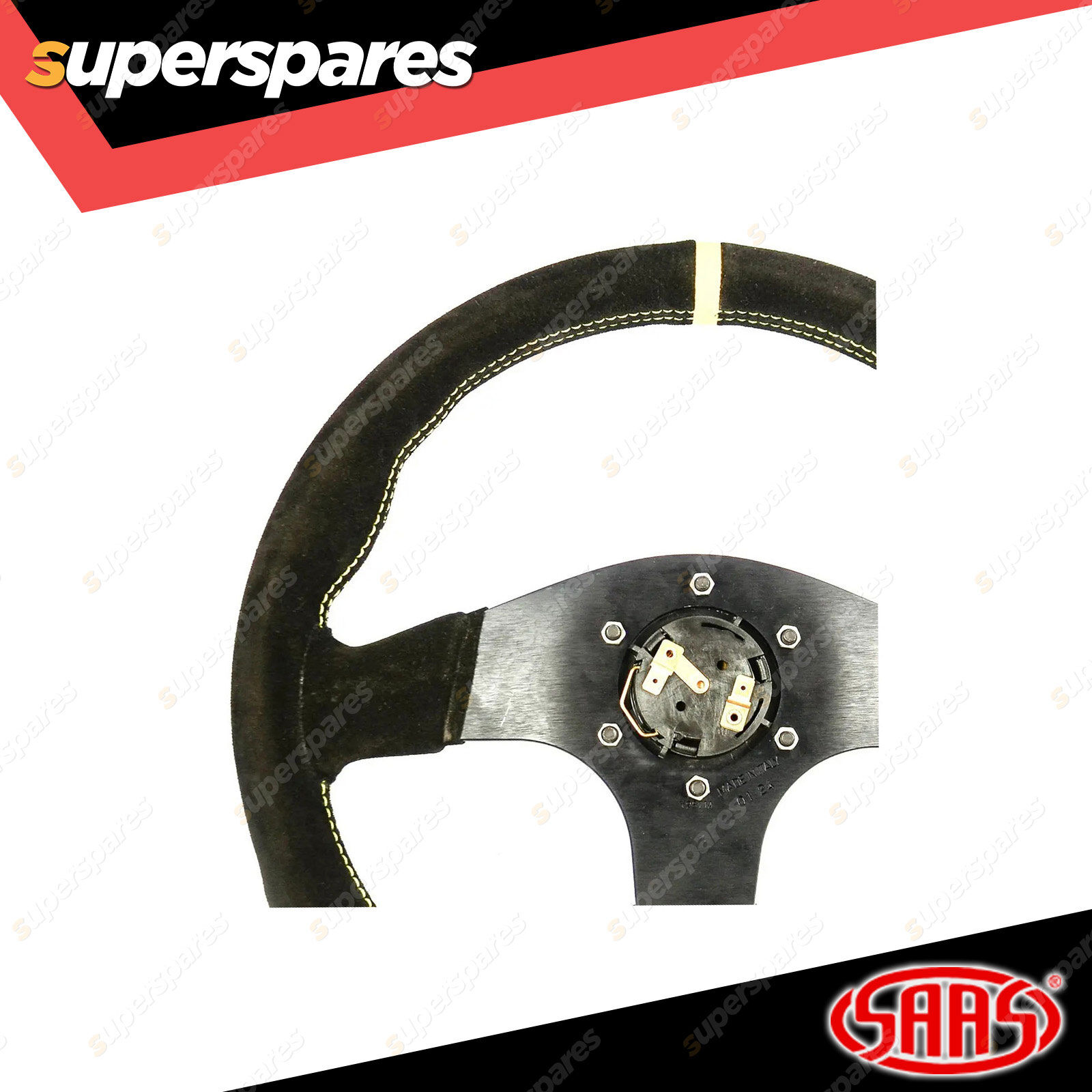 Our SAAS Italian made steering wheels are a masterpiece of design and craftsmanship. The Corsa boasts a contoured grip and is exquisitely trimmed in Italian suede - this premium SAAS steering wheel evokes a high performance driving experience. The elegant hand stitching and a yellow centreline indicator add an element of classic design to your vehicle.