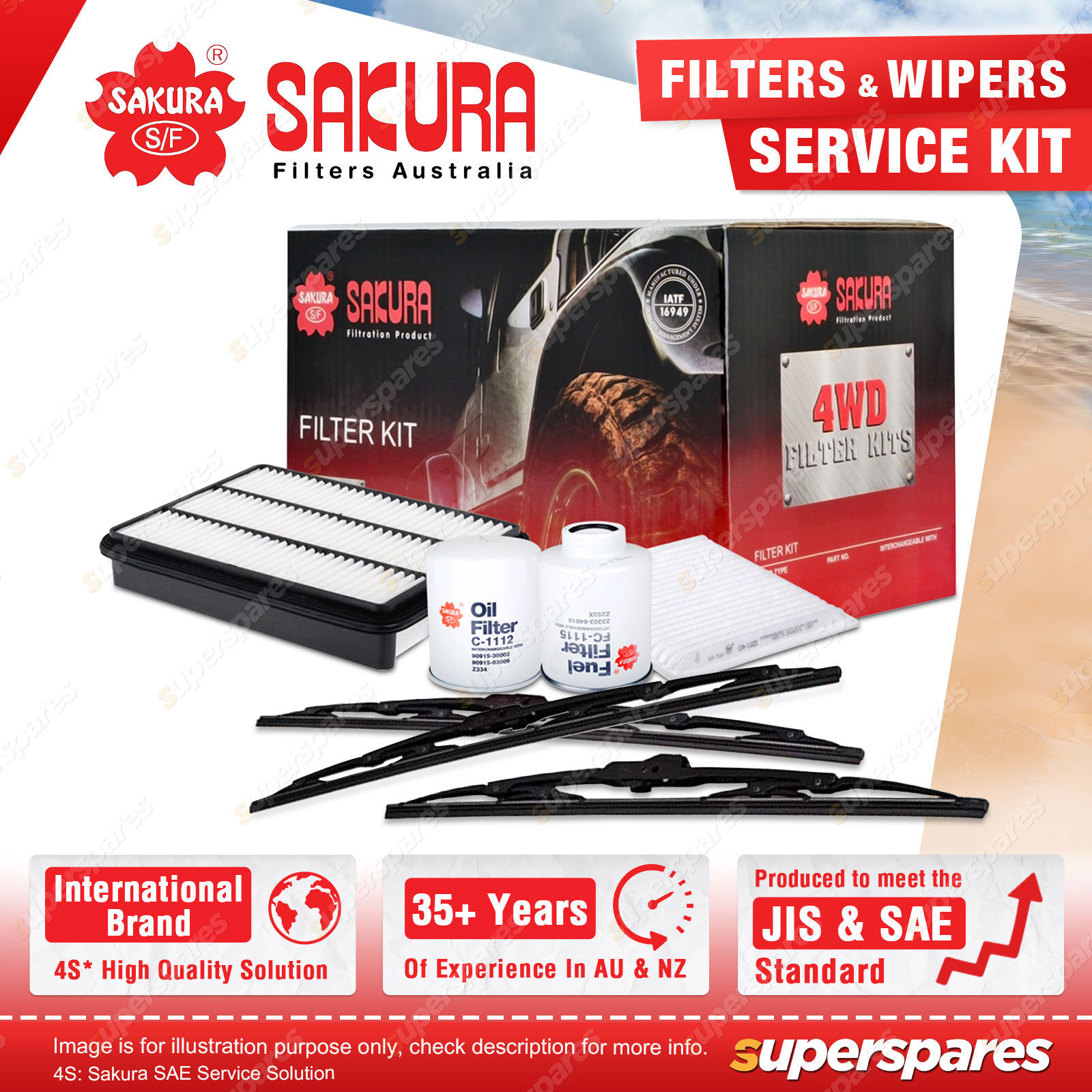 Content : Sakura Front + Rear Wiper Blades & Oil Air Fuel Cabin Filter Service Kit