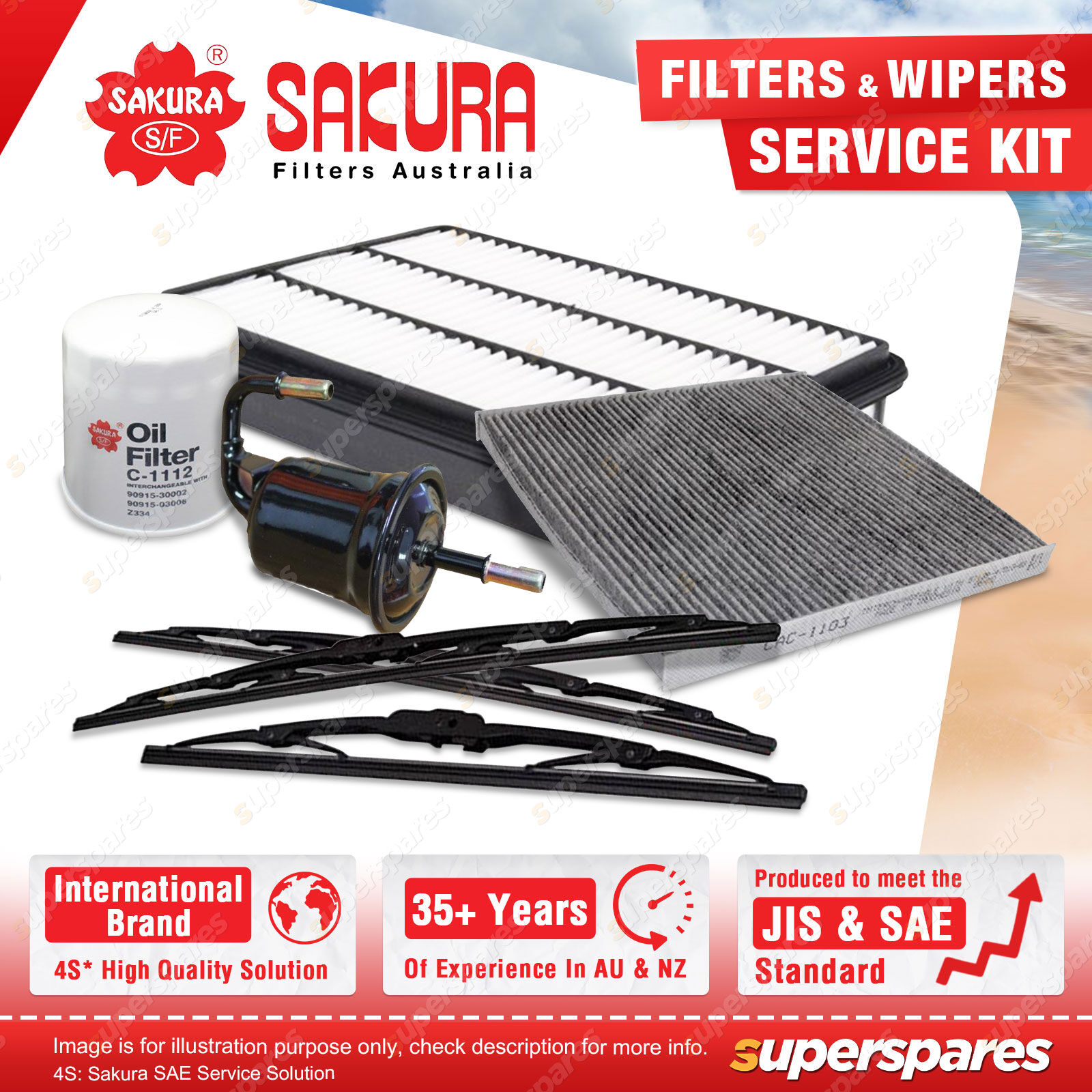 Content : Sakura Front + Rear Wiper Blades & Oil Air Fuel Cabin Filter Service Kit