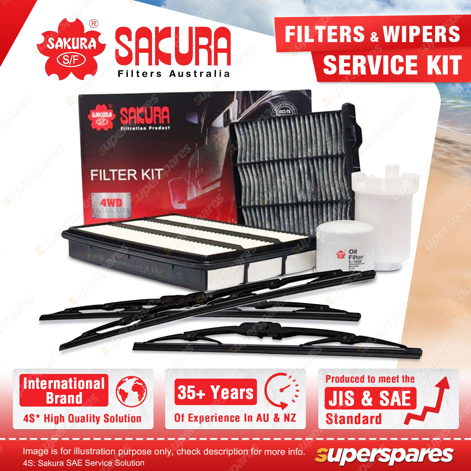 Content : Sakura Front + Rear Wiper Blades & Oil Air Fuel Cabin Filter Service Kit