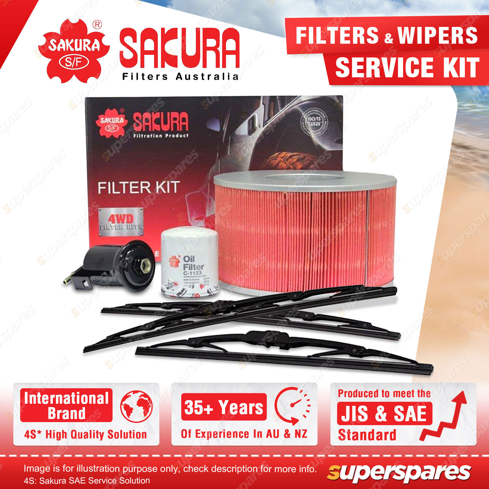 Content : Sakura Front + Rear Wiper Blades & Oil Air Fuel Filter Service Kit