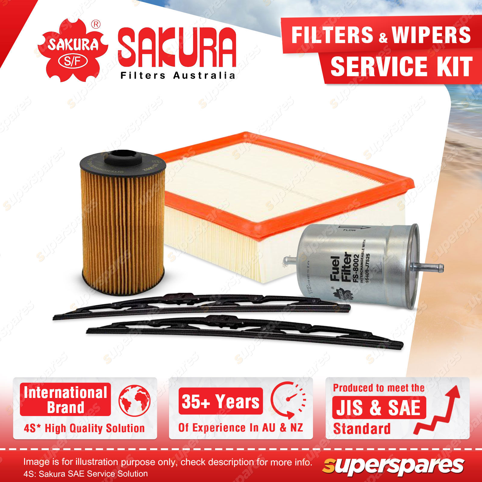 Content : Sakura Front Wiper Blades & Oil Air Fuel Filter Service Kit