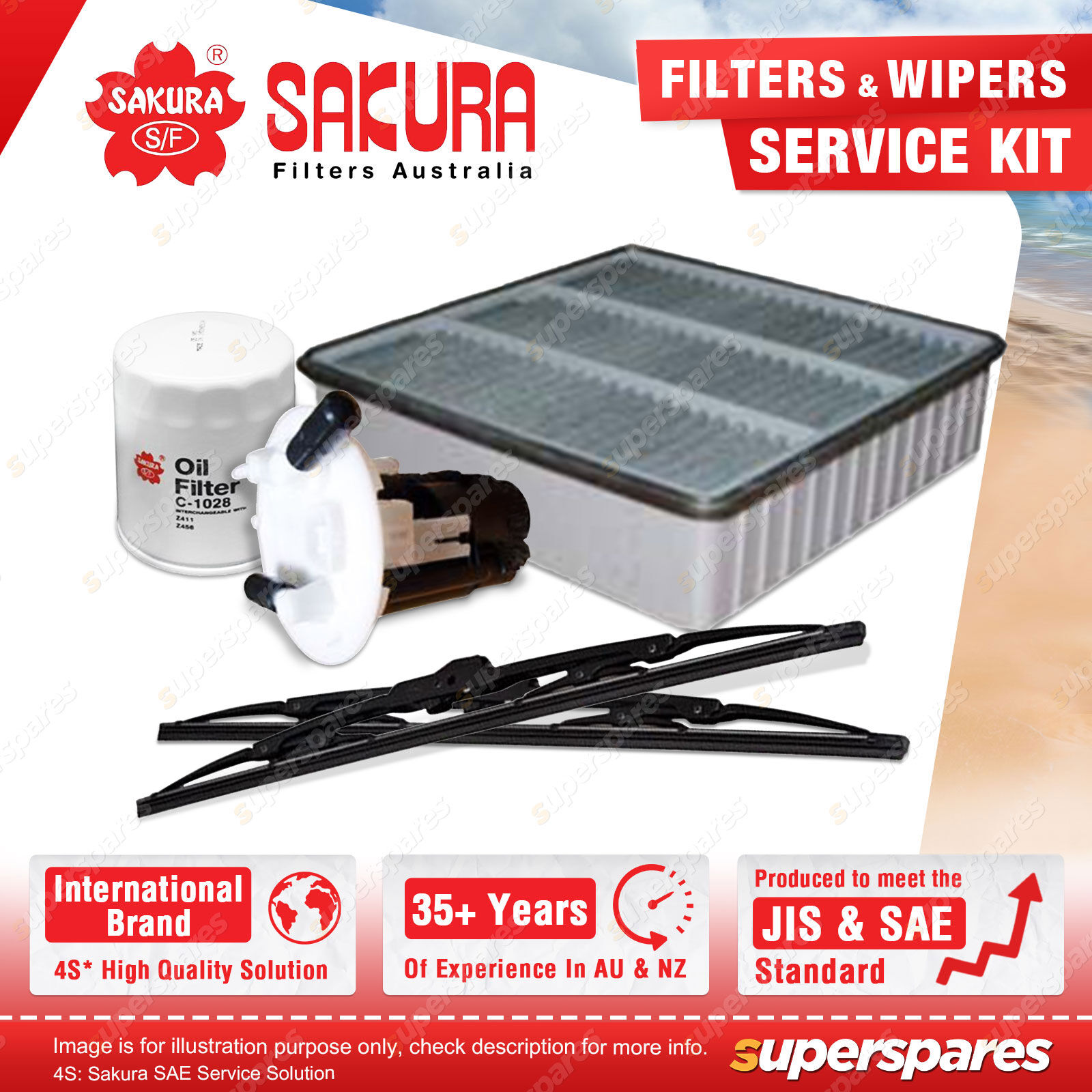 Content : Sakura Front Wiper Blades & Oil Air Fuel Filter Service Kit
