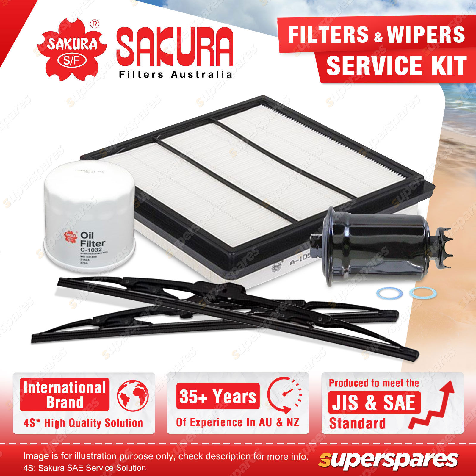 Content : Sakura Front Wiper Blades & Oil Air Fuel Filter Service Kit
