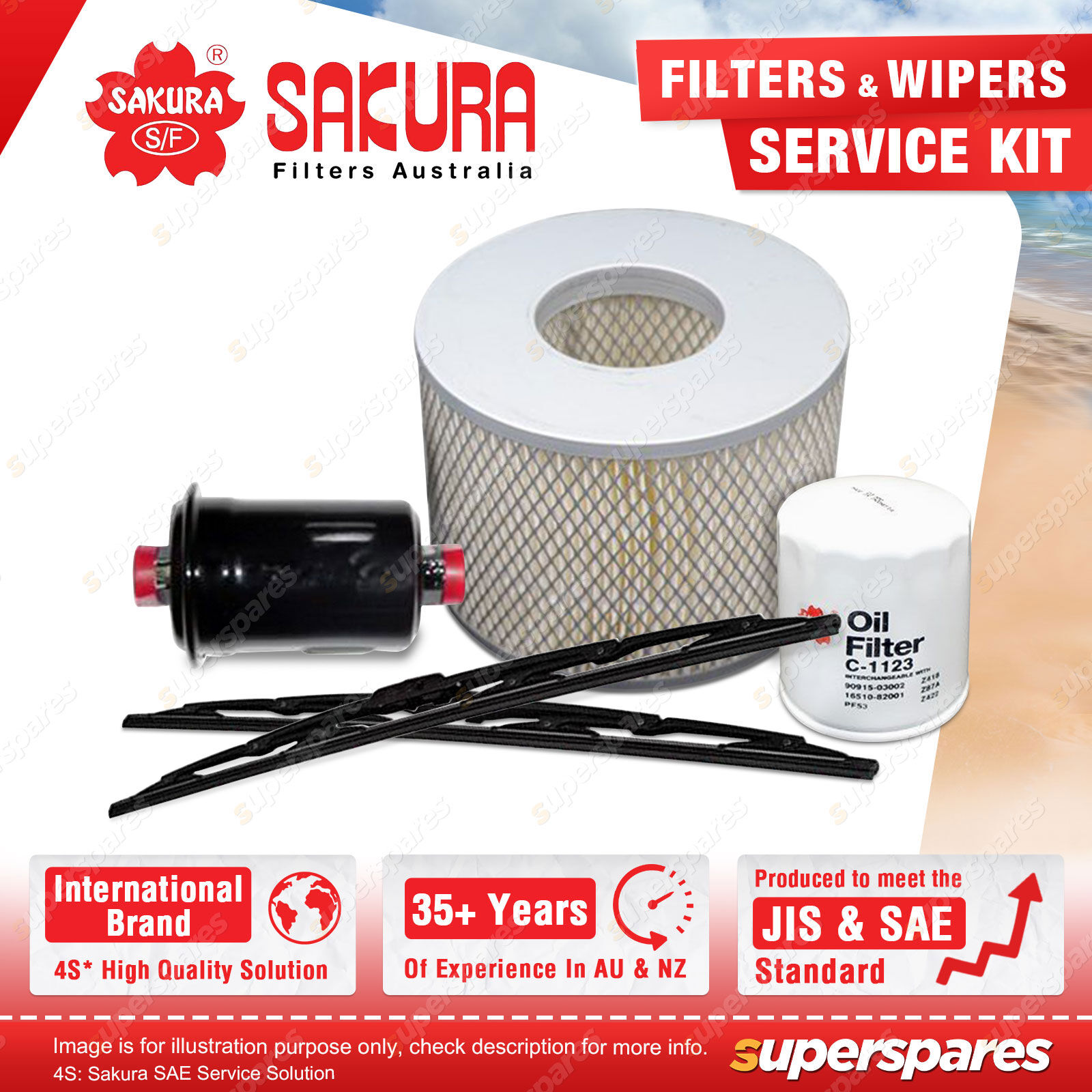 Content : Sakura Front Wiper Blades & Oil Air Fuel Filter Service Kit