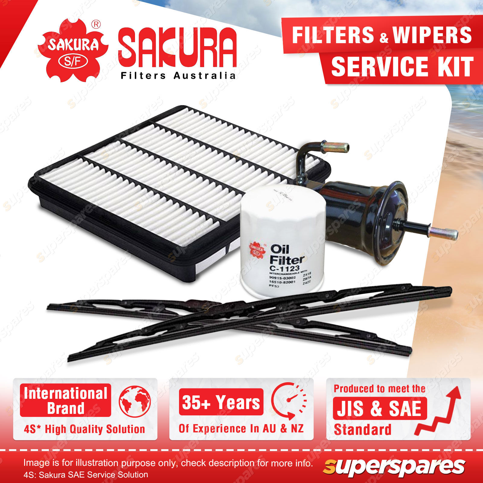 Content : Sakura Front Wiper Blades & Oil Air Fuel Filter Service Kit