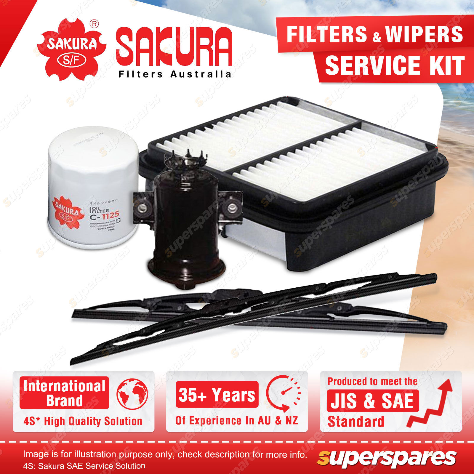 Content : Sakura Front Wiper Blades & Oil Air Fuel Filter Service Kit