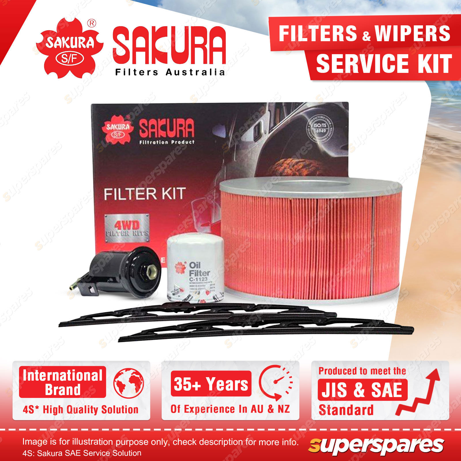 Content : Sakura Front Wiper Blades & Oil Air Fuel Filter Service Kit