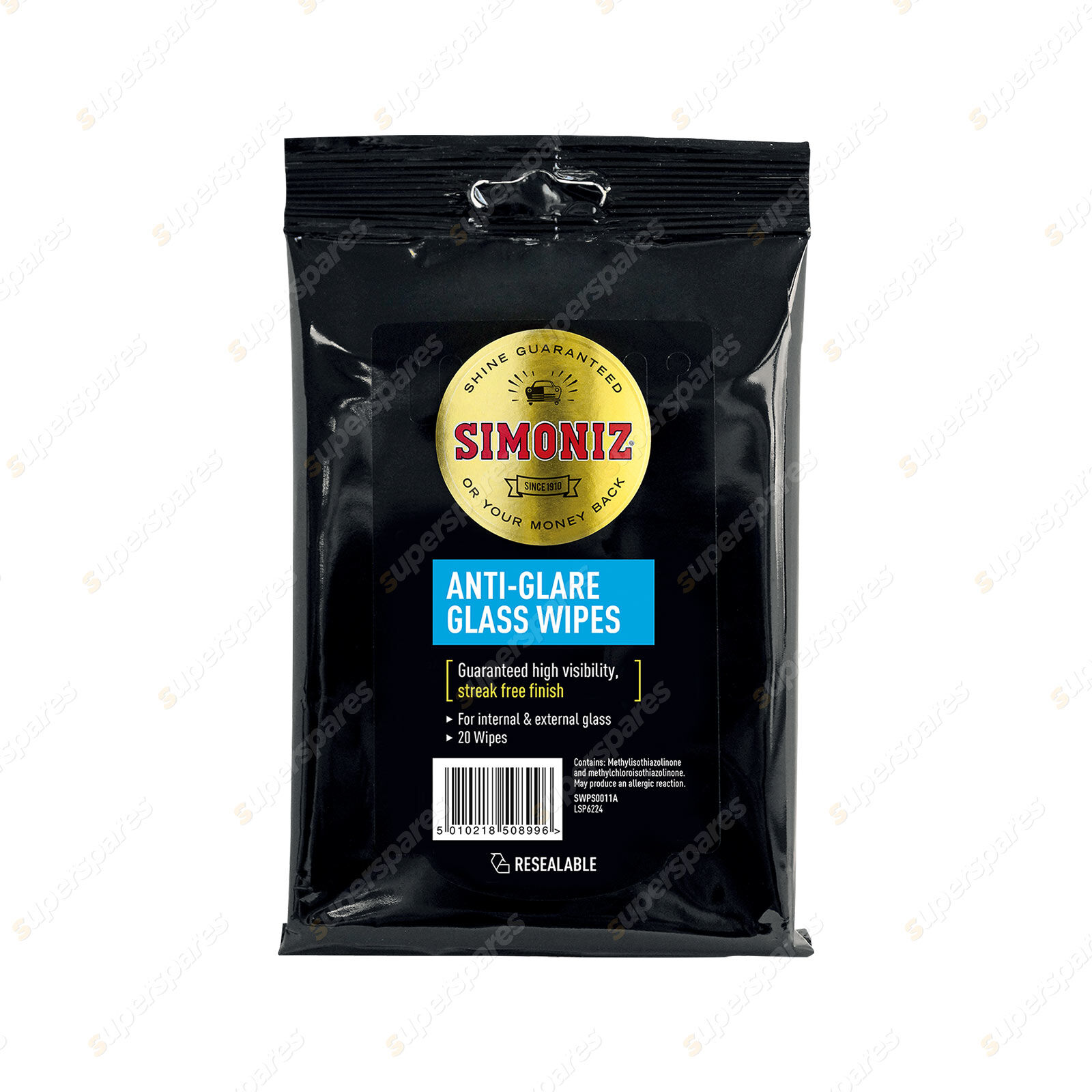 Contents : 1 x Simoniz Anti-glare Glass Wipes 20PK