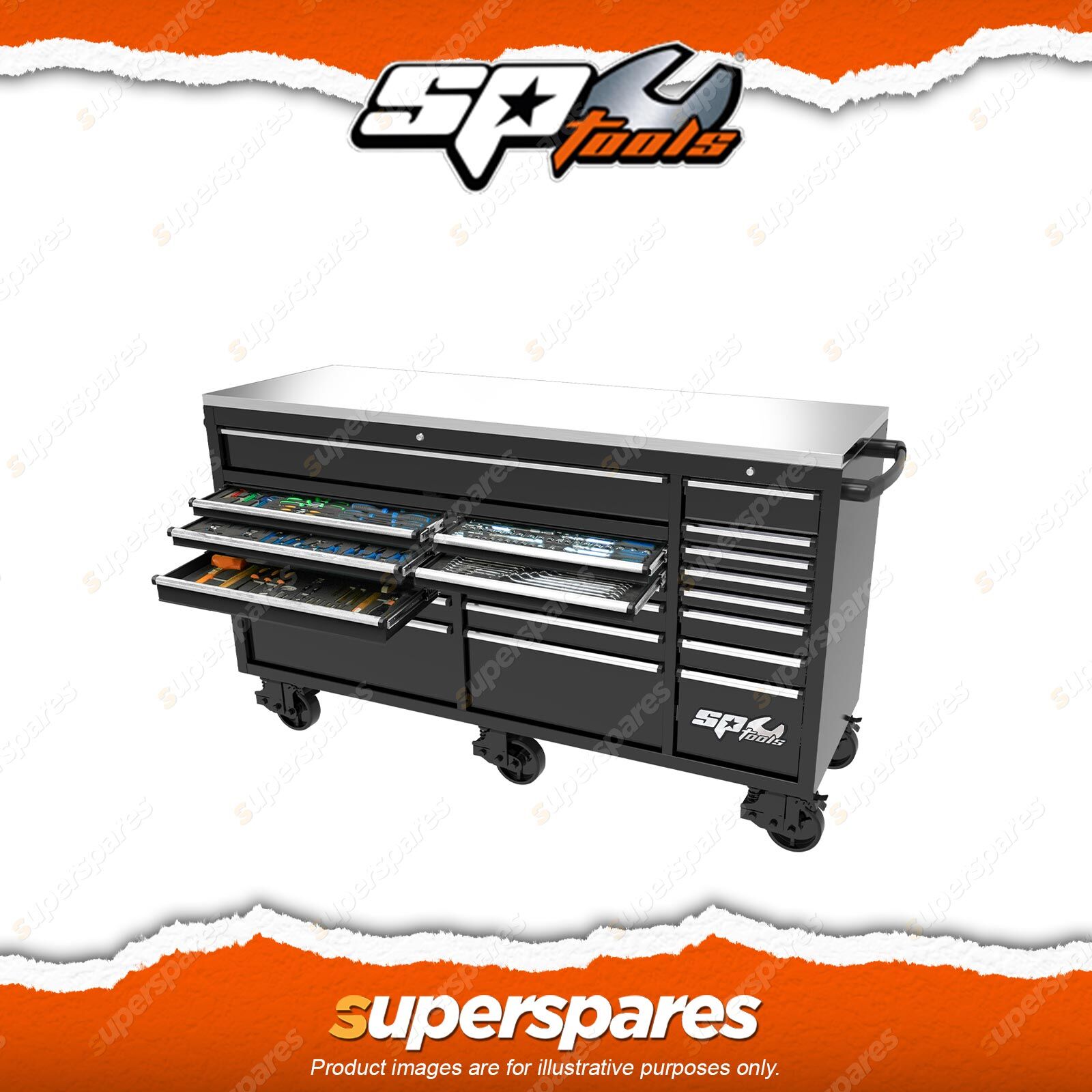 Magnetic Mount Power BoardUnique to SP ToolsPosition your Power boards anywhere on your tool kit. All USA Sumo Series roll cabs, top hutches and side cabinets include several built-in cable access points, strategically positioned to allow you to Power or charge your tools and USB Powered devices as conveniently as possible. Each Power board Includes 4 individually switched surge protected Power outlets and 4 USB ports. 128" TOOL KIT COMBINED Dimensions:3250w x 622d x 1752h (1954h with castors)(6'1" Head Clearance) 73" USA Sumo Series 21 Drawer Roller Cabinet1850w x 622d x 888h (1954h with castors)(mm) - 1x Drawer : 1367w x 575d x 115h