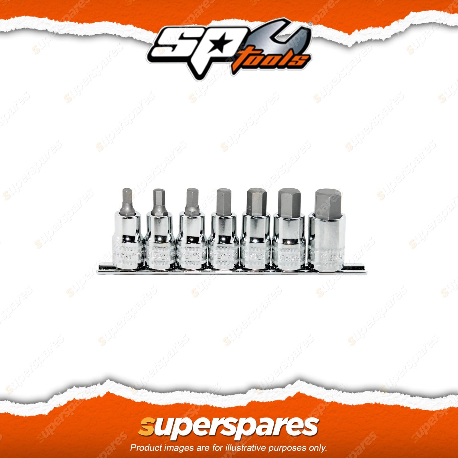 ![]() | Contains: SP Tools 7Pcs 1/2" Drive Inhex Short Socket Rail Set |