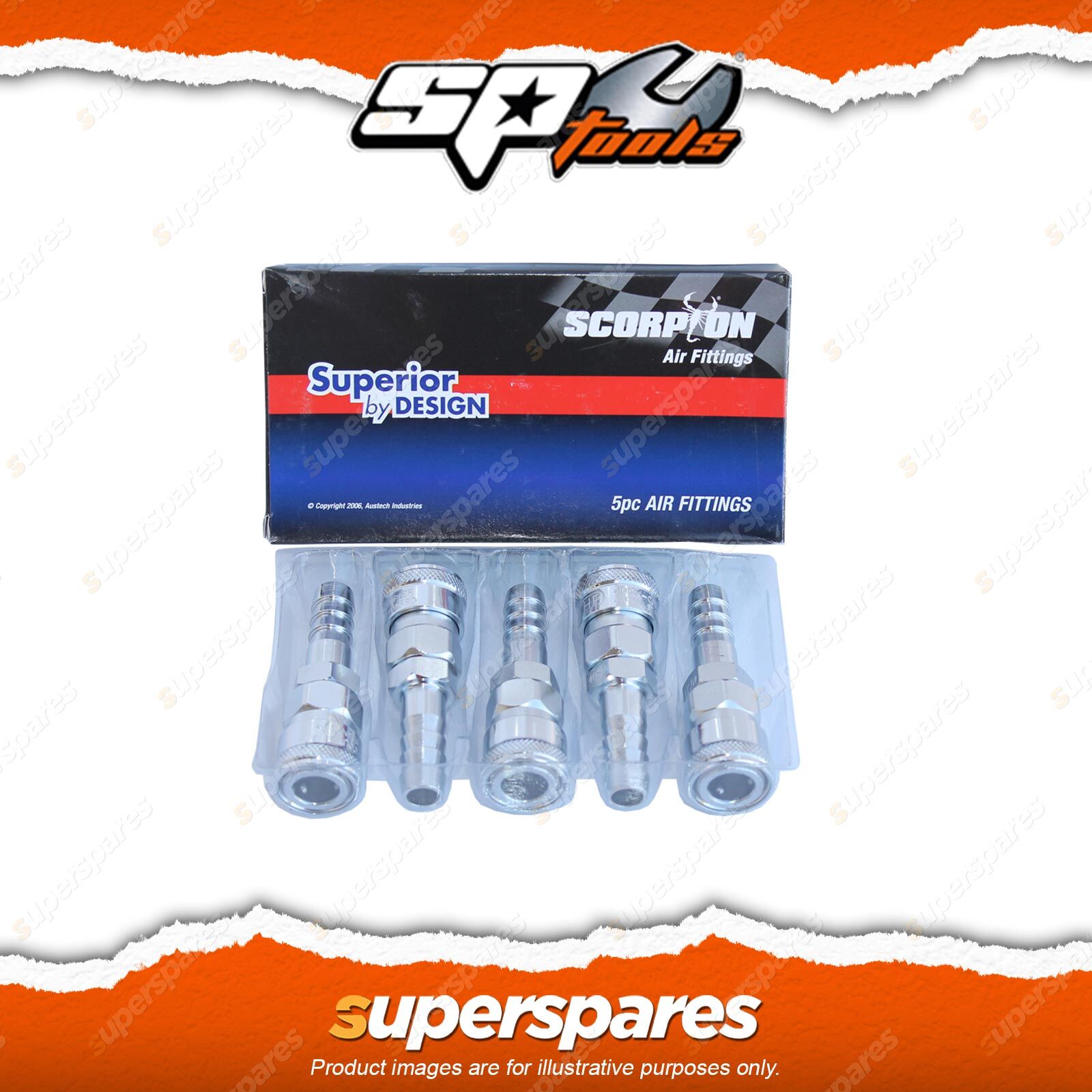 ![]() | Contains: SP Tools Scorpion 5Pcs 1/2" Barb Coupler Hose Box |