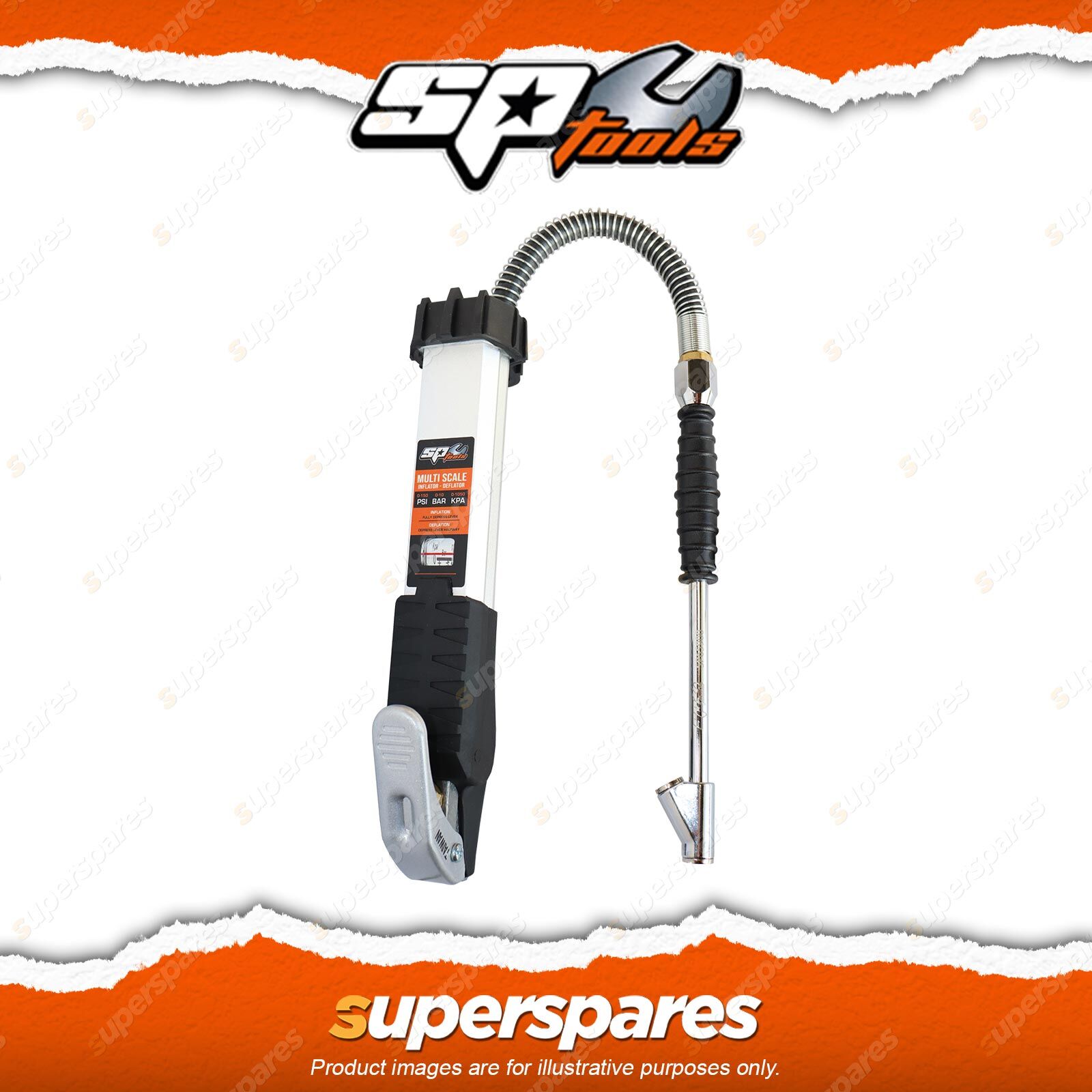 ![]() | Contains: 1 x SP Tools Tyre Inflator With Deflator Convex Lens Gauge Professional |