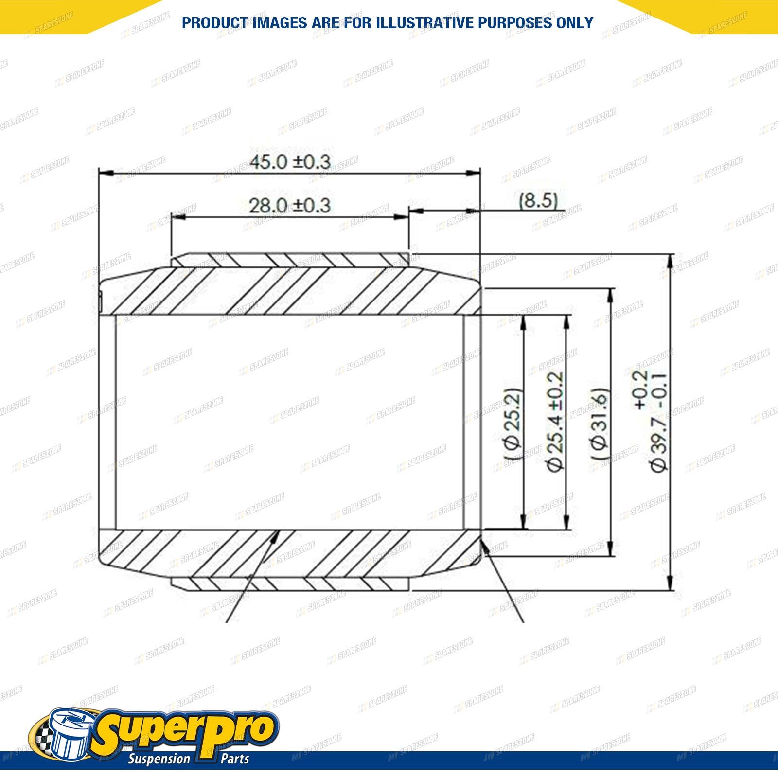 SuperPro bushings can be used in strut bars, radius rods and trailing arm locations, which will improve the road holding, handling and tyre wear of any passenger car or 4WD. This is possible because SuperPro products achieve consistent tyre-to-road-alignment, particularly under braking and cornering loads. In many cases there is little or no effect on NVH, thanks to careful design by our R&D technicians. Some in-built bushing features of these bushes include; tangential grooves, knurling, double helix grooves and bullet grooves. All these features are included in the design for grease retention and to ensure the bushings perform at the highest of standards while minimising excess noise, vibration and harshness (NVH). |