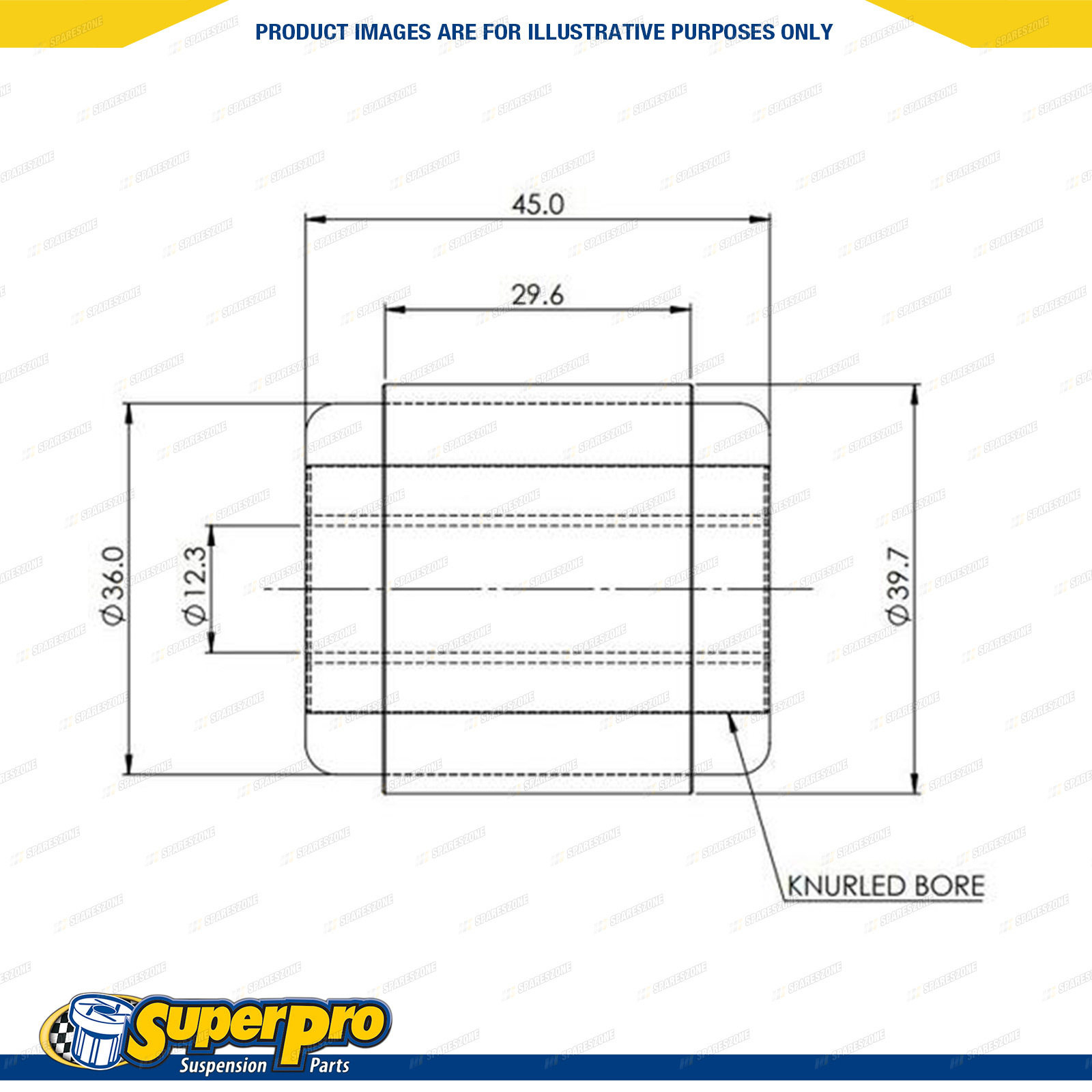 SuperPro bushings can be used in strut bars, radius rods and trailing arm locations, which will improve the road holding, handling and tyre wear of any passenger car or 4WD. This is possible because SuperPro products achieve consistent tyre-to-road-alignment, particularly under braking and cornering loads. In many cases there is little or no effect on NVH, thanks to careful design by our R&D technicians. Some in-built bushing features of these bushes include; tangential grooves, knurling, double helix grooves and bullet grooves. All these features are included in the design for grease retention and to ensure the bushings perform at the highest of standards while minimising excess noise, vibration and harshness (NVH). |