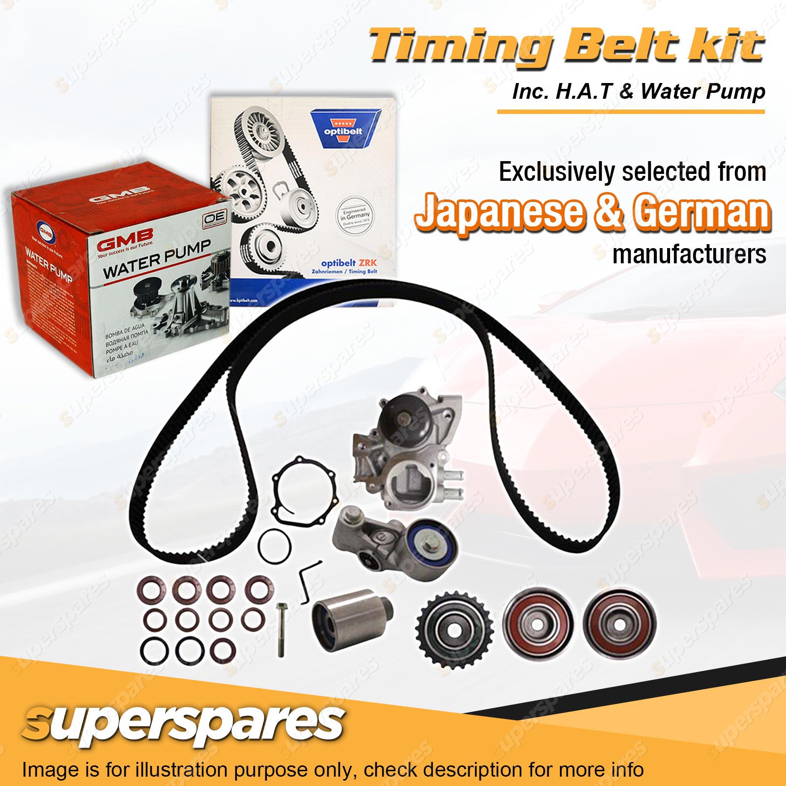 | Timing Belt: All of superspares timing belt kits utilize a genuine Optibelt brand belt. Optibelt has long since made a name for itself as a reliable partner to the international automotive industry. The engineers of the German family-run business invest a lot of time and even more energy into the research of materials. |