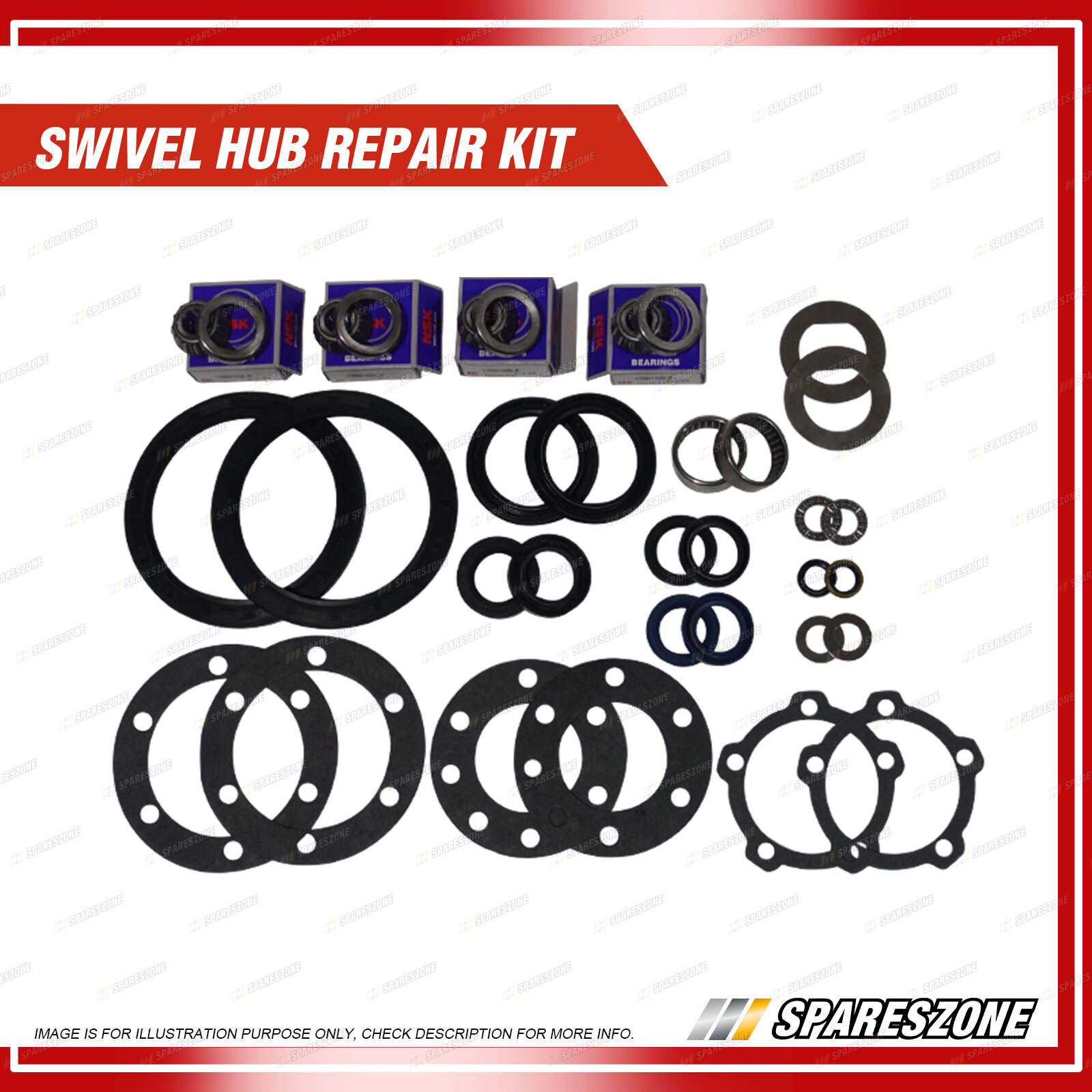 Spareszone Swivel hub Repair Kit Includes all seals, gaskets & bearings to rebuild swivel hub will allow for your transmission system to run at it's best possible potential,giving you a safer and smoother driving experience. |