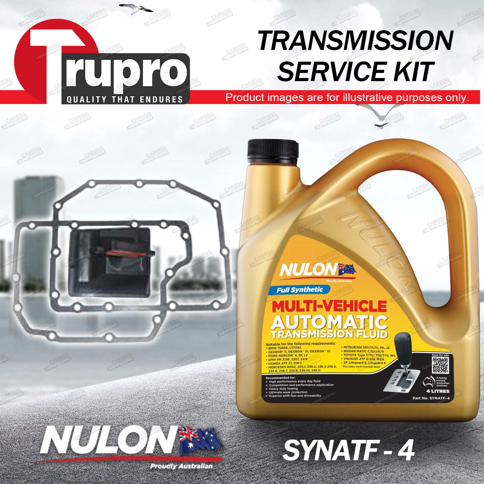 Note: eBay's compatibility table is not accurate in some cases. Please refer to the following information we have provided for you. Copyright © 2014 - 2023 Superspares. All rights reserved. Contents: 1 x Trupro Transmission Filter Service Kit 1 x Nulon Full Synthetic Multi Vehicle Automatic Transmission Fluid (4L) Suit Vehicle: