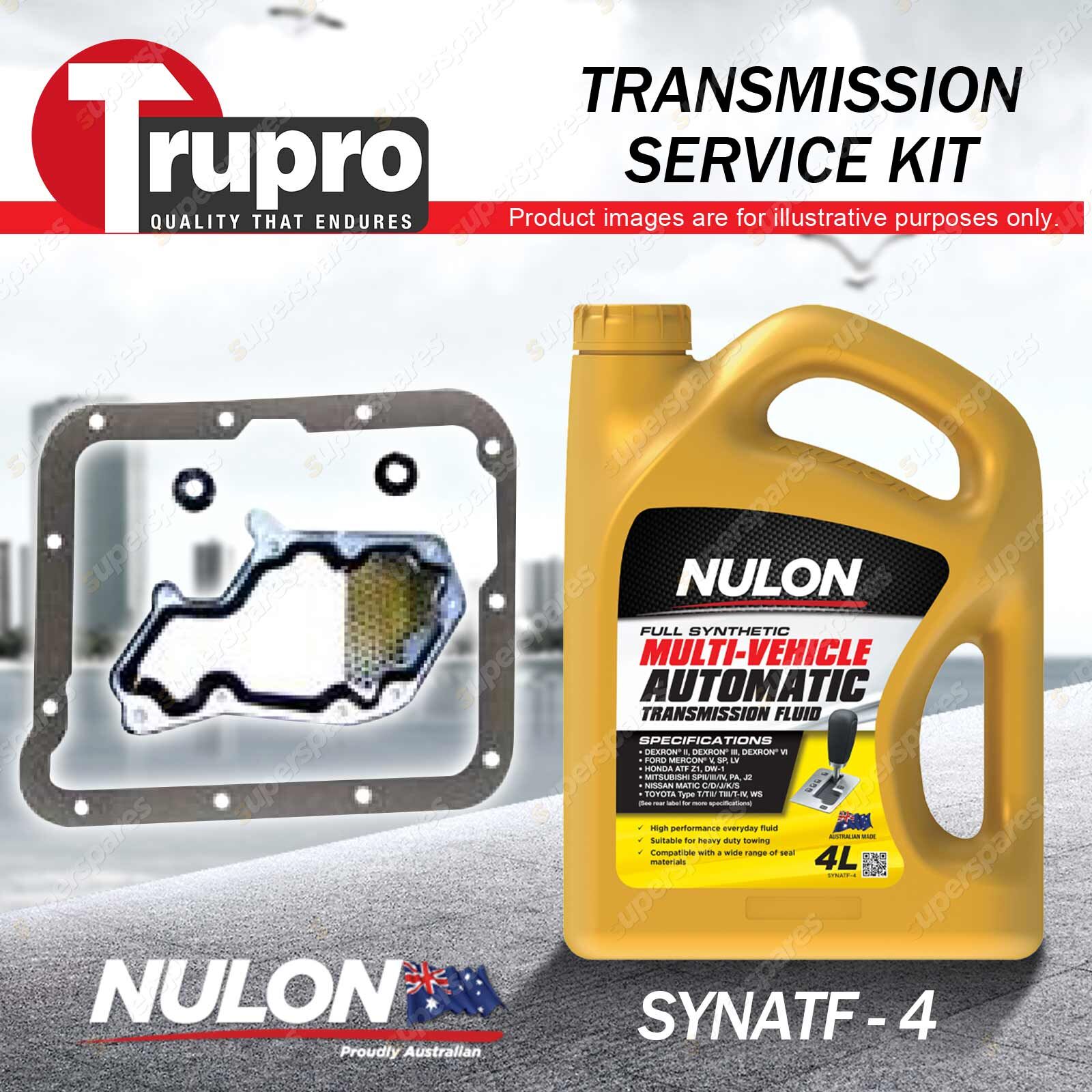 Note: eBay's compatibility table is not accurate in some cases. Please refer to the following information we have provided for you. Copyright © 2014 - 2023 Superspares. All rights reserved. Contents: 1 x Trupro Transmission Filter Service Kit 1 x Nulon Full Synthetic Multi Vehicle Automatic Transmission Fluid (4L) Suit Vehicle: