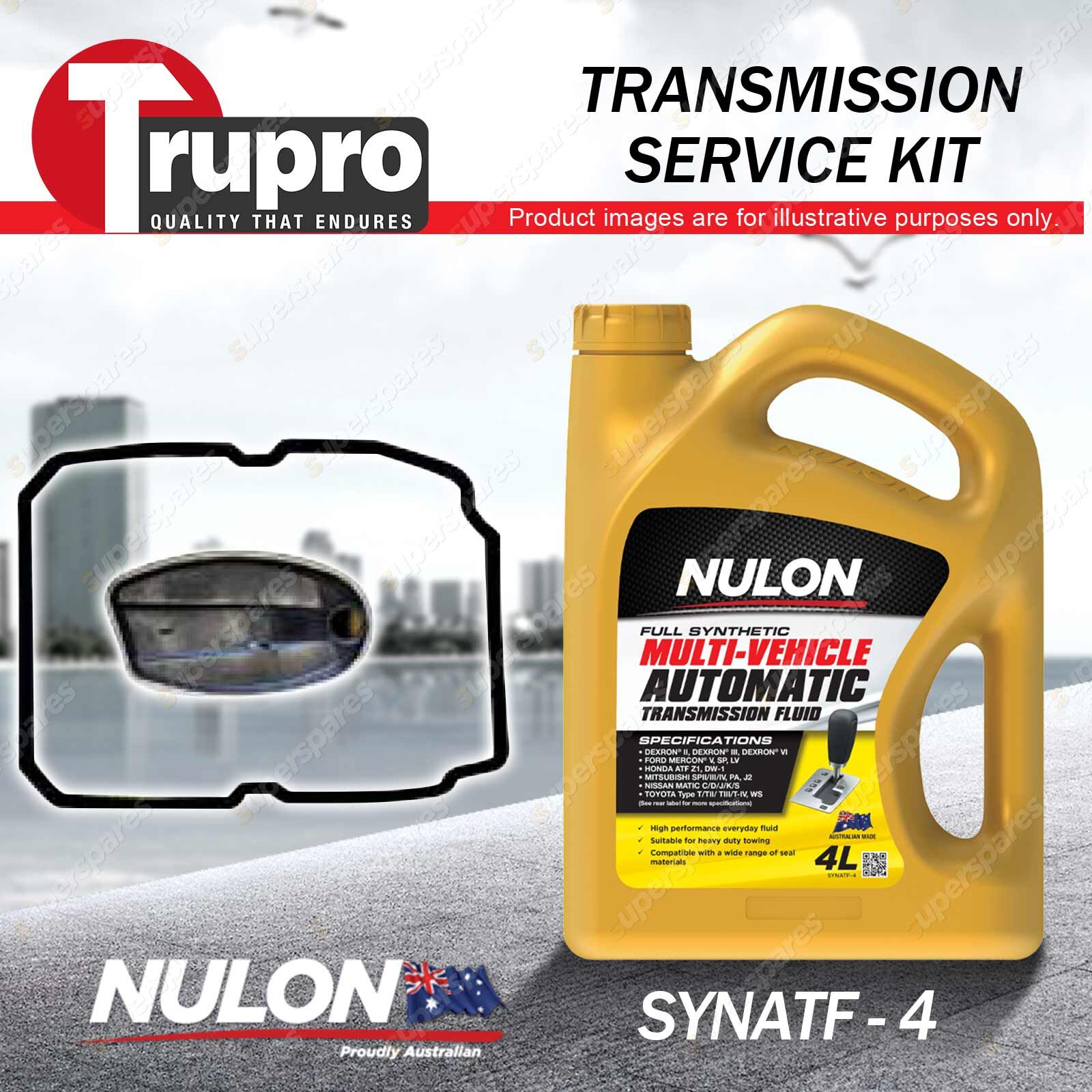 Note: eBay's compatibility table is not accurate in some cases. Please refer to the following information we have provided for you. Copyright © 2014 - 2023 Superspares. All rights reserved. Contents: 1 x Trupro Transmission Filter Service Kit 1 x Nulon Full Synthetic Multi Vehicle Automatic Transmission Fluid (4L) Suit Vehicle: