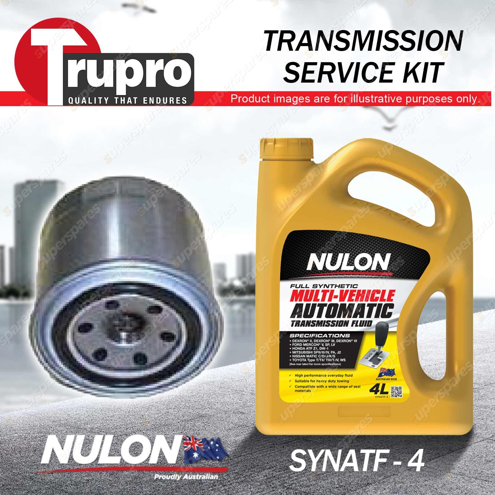 Note: eBay's compatibility table is not accurate in some cases. Please refer to the following information we have provided for you. Copyright © 2014 - 2023 Superspares. All rights reserved. Contents: 1 x Trupro Transmission Filter Service Kit 1 x Nulon Full Synthetic Multi Vehicle Automatic Transmission Fluid (4L) Suit Vehicle:
