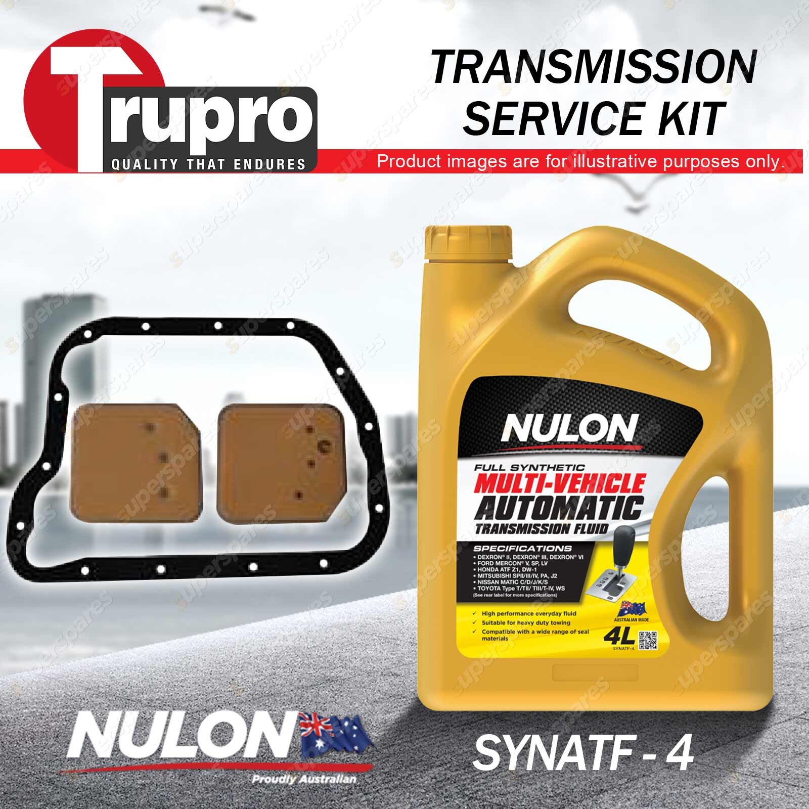 Note: eBay's compatibility table is not accurate in some cases. Please refer to the following information we have provided for you. Copyright © 2014 - 2023 Superspares. All rights reserved. Contents: 1 x Trupro Transmission Filter Service Kit 1 x Nulon Full Synthetic Multi Vehicle Automatic Transmission Fluid (4L) Suit Vehicle:
