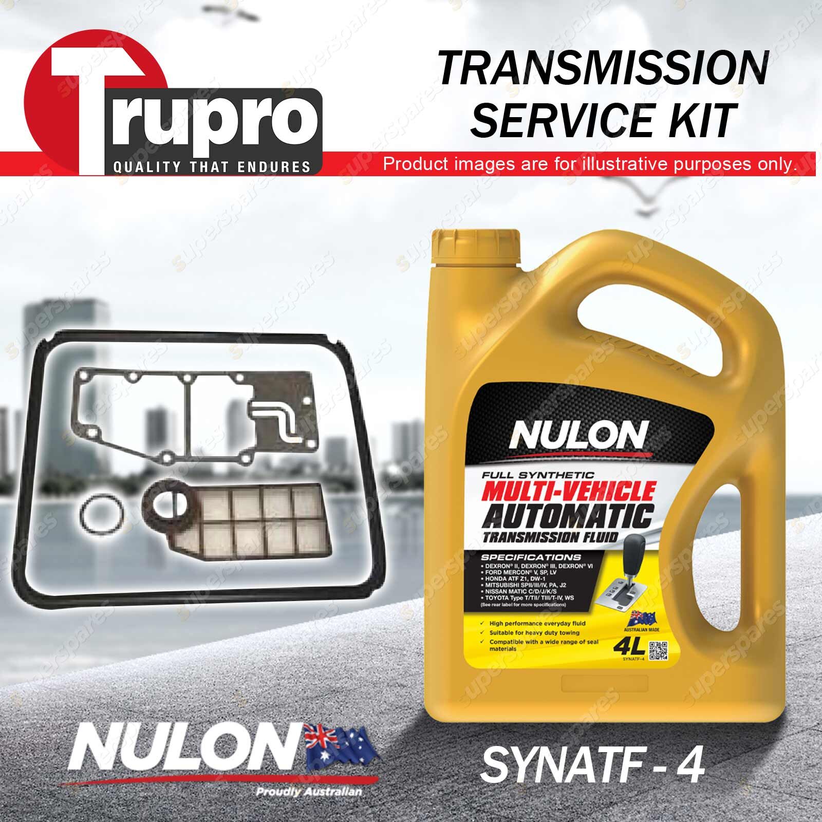 Note: eBay's compatibility table is not accurate in some cases. Please refer to the following information we have provided for you. Copyright © 2014 - 2023 Superspares. All rights reserved. Contents: 1 x Trupro Transmission Filter Service Kit 1 x Nulon Full Synthetic Multi Vehicle Automatic Transmission Fluid (4L) Suit Vehicle: