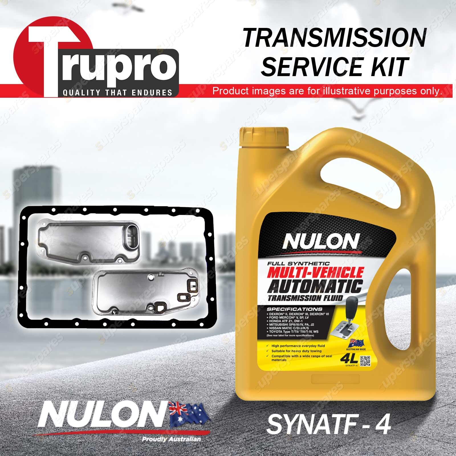 Note: eBay's compatibility table is not accurate in some cases. Please refer to the following information we have provided for you. Copyright © 2014 - 2023 Superspares. All rights reserved. Contents :1 x Trupro Transmission Filter Service Kit 1 x Nulon Full Synthetic Multi Vehicle Automatic Transmission Fluid (4L) Suit Vehicle : |