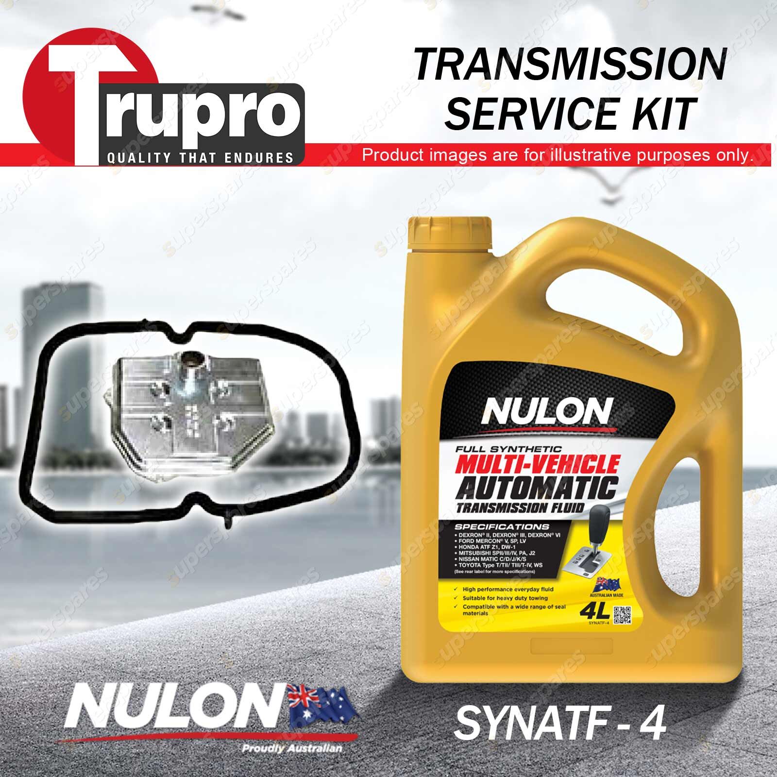 Note: eBay's compatibility table is not accurate in some cases. Please refer to the following information we have provided for you. Copyright © 2014 - 2023 Superspares. All rights reserved. Contents: 1 x Trupro Transmission Filter Service Kit 1 x Nulon Full Synthetic Multi Vehicle Automatic Transmission Fluid (4L) Suit Vehicle: