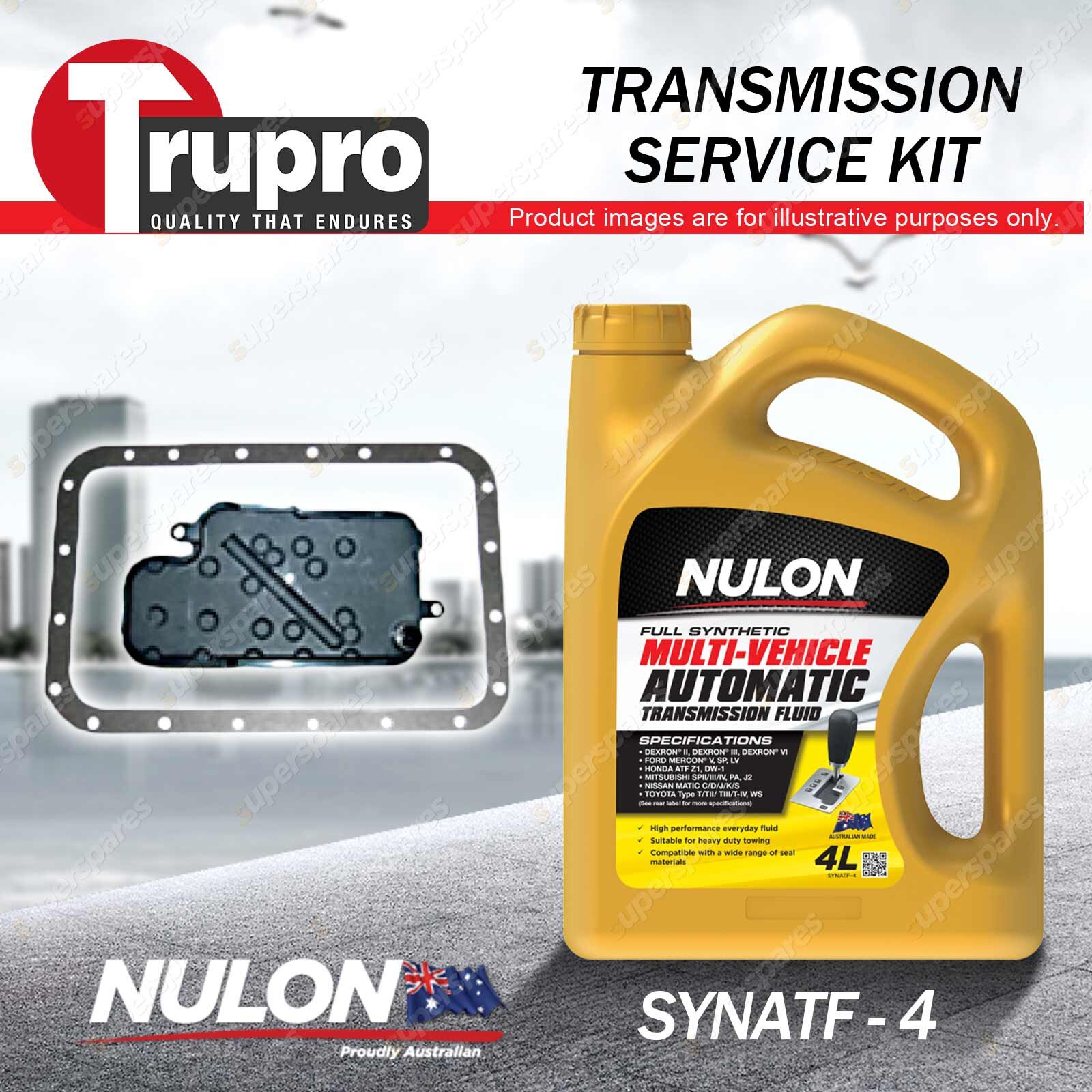 Note: eBay's compatibility table is not accurate in some cases. Please refer to the following information we have provided for you. Copyright © 2014 - 2023 Superspares. All rights reserved. Contents: 1 x Trupro Transmission Filter Service Kit 1 x Nulon Full Synthetic Multi Vehicle Automatic Transmission Fluid (4L) Suit Vehicle: