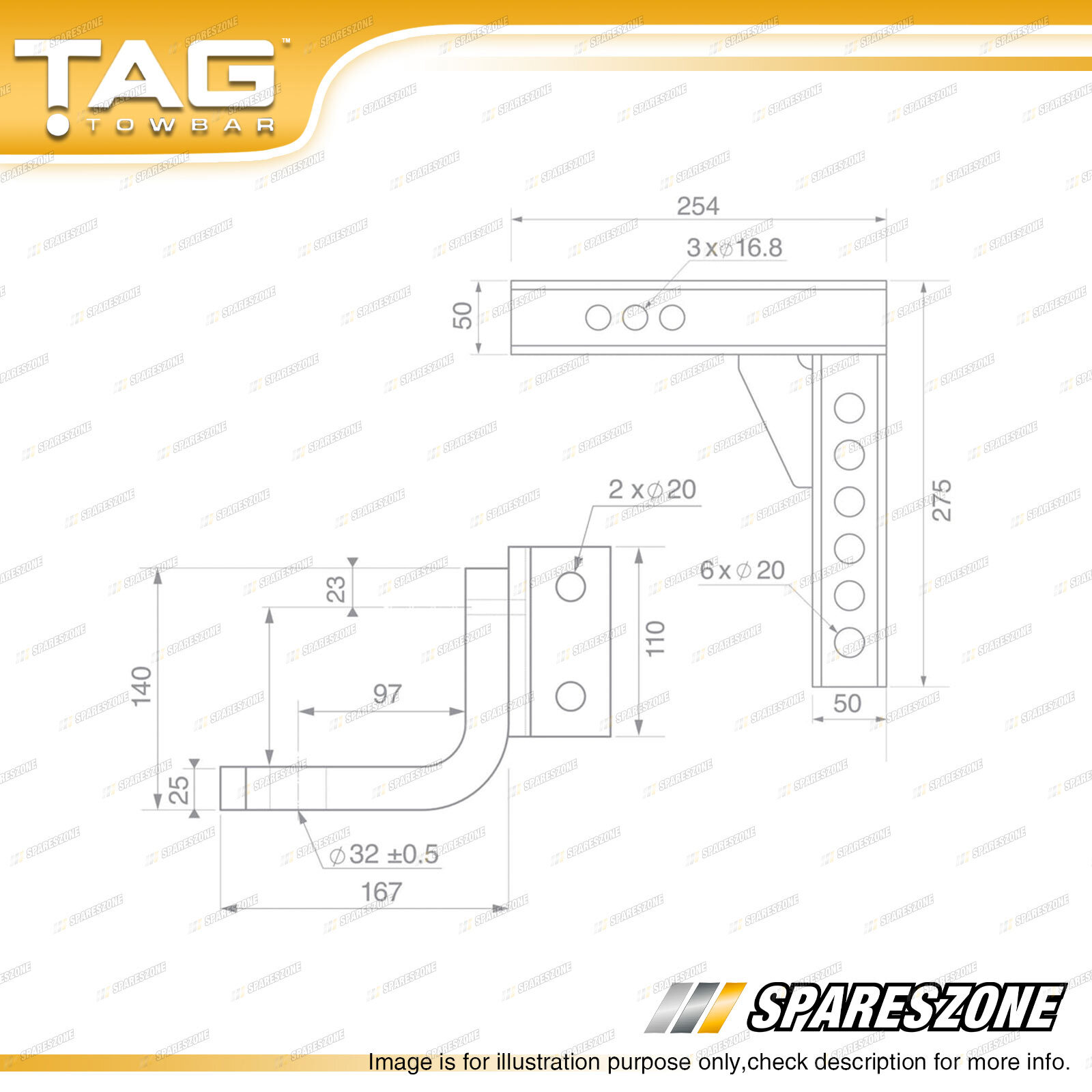 The TAG Adjustable Tow Ball Mount features a heavy-duty 50mm square shank with multiple pin holes for horizontal and vertical adjustment to suit your towing setup.For full compatibility, the unit includes a reducer allowing the use of a 70mm or 50mm tow ball. Made from solid steel with a durable powder-coated finish that resists rust, corrosion, and chipping.
