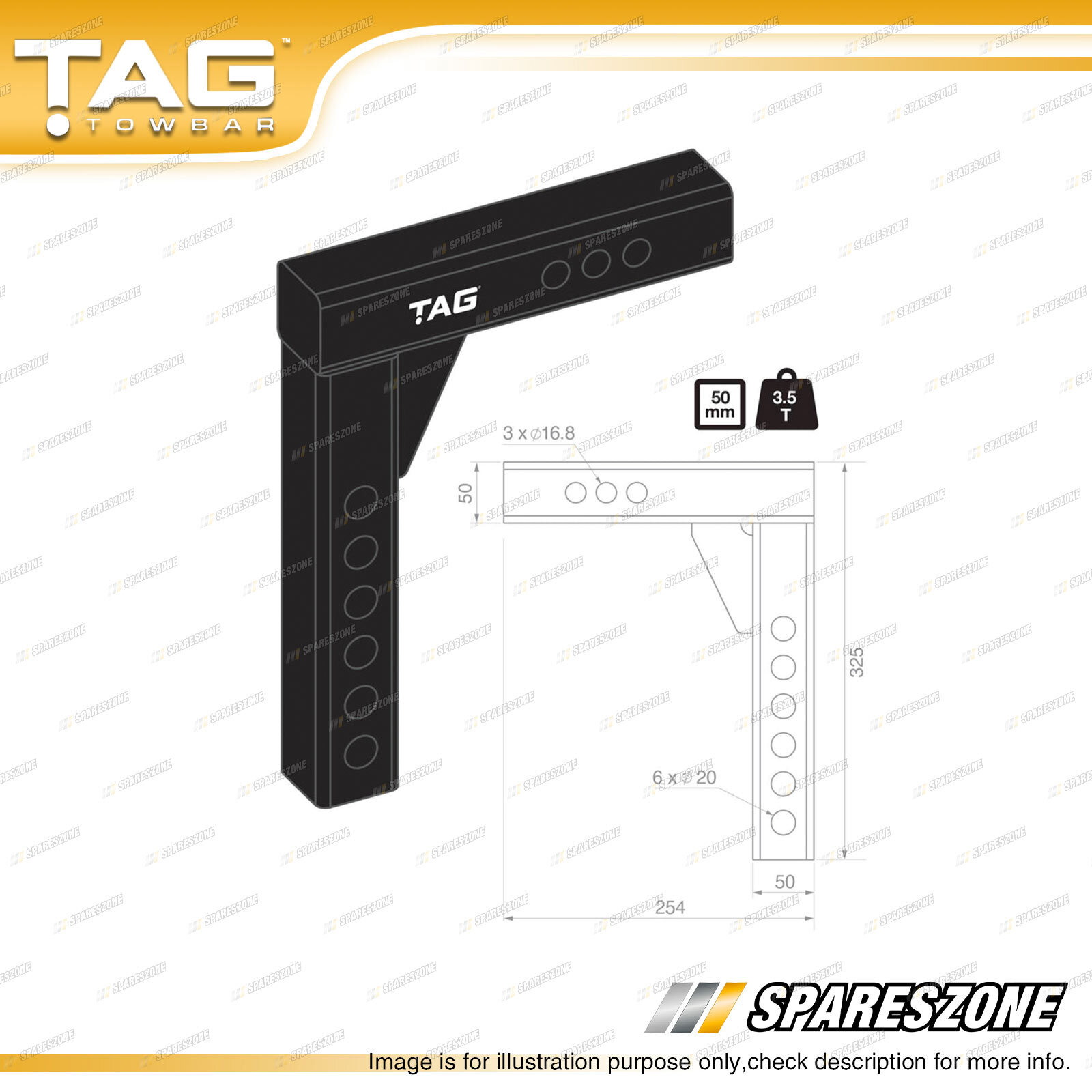 Towing Capacity : 3500kg Drop : 100mm Coating : Powder-Coated Ball Weight : 350kg Hitch Type : Heavy Duty 50mm Square |