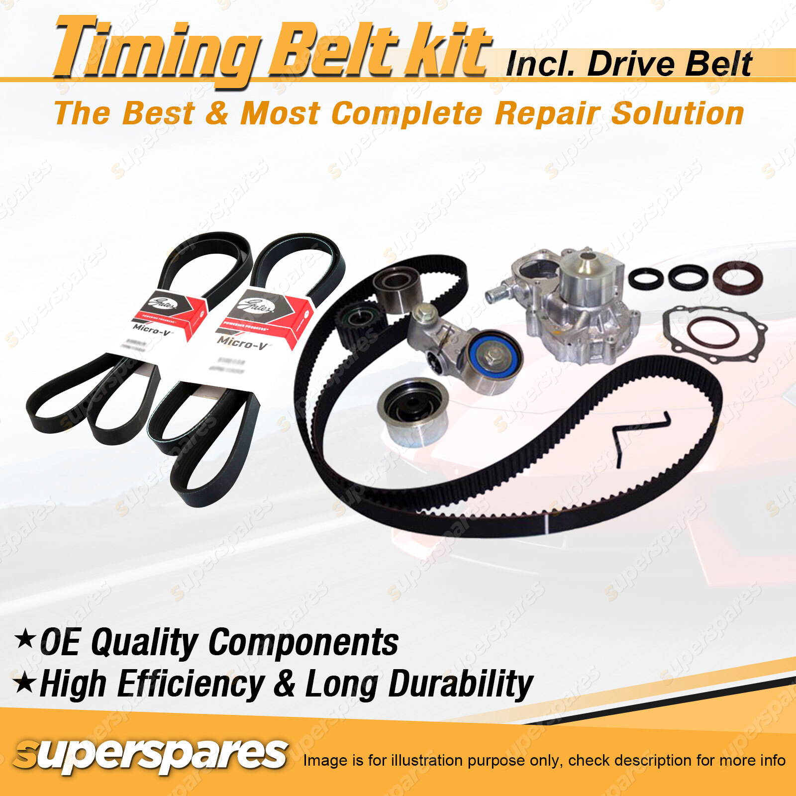 Content : Superspares Timing Belt Kit inc Hydraulic Tensioner & Waterpump & Gates Drive Belt
