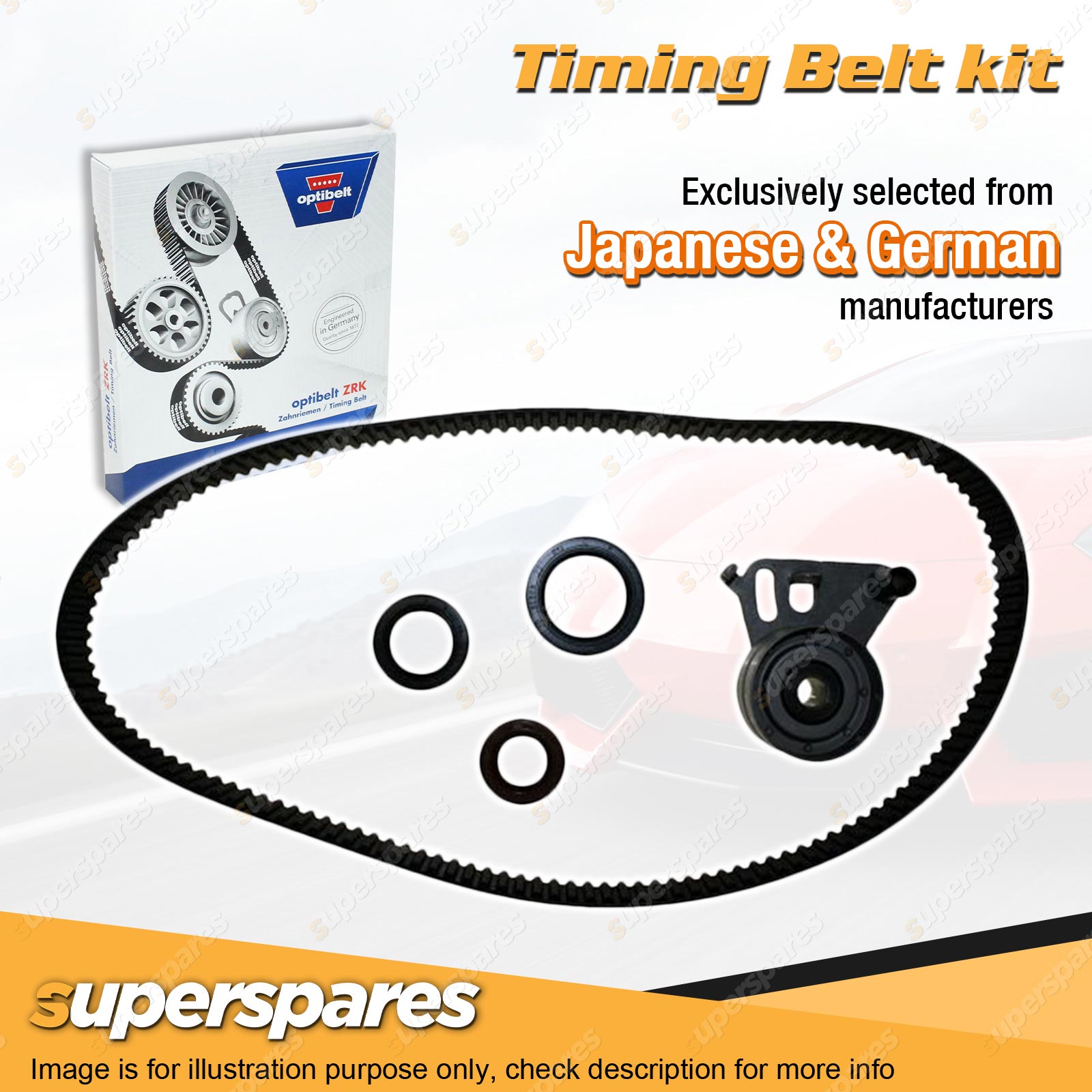 | Timing Belt: All of superspares timing belt kits utilize a genuine Optibelt brand belt. Optibelt has long since made a name for itself as a reliable partner to the international automotive industry. The engineers of the German family-run business invest a lot of time and even more energy into the research of materials. |