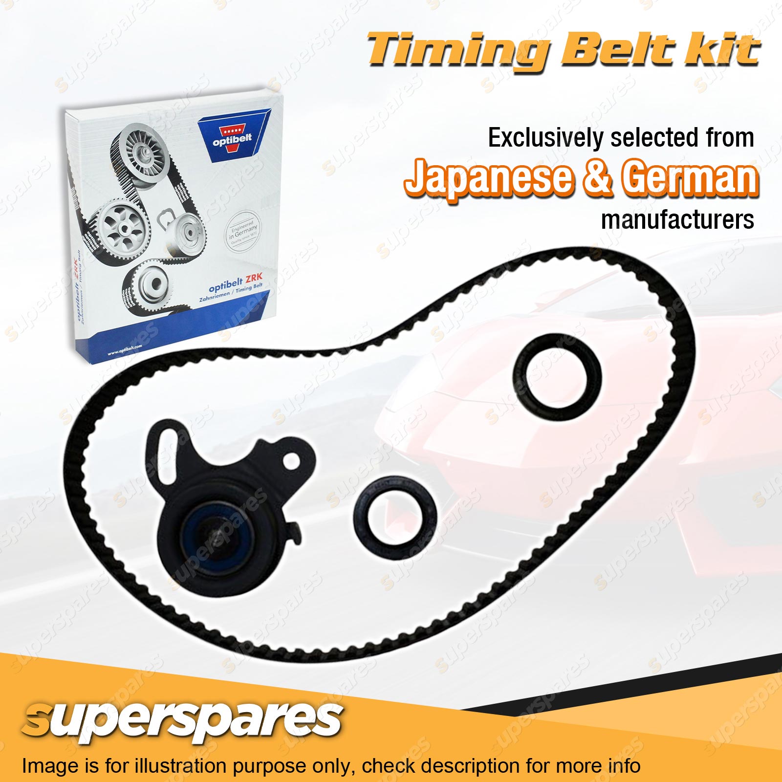 | Timing Belt: All of superspares timing belt kits utilize a genuine Optibelt brand belt. Optibelt has long since made a name for itself as a reliable partner to the international automotive industry. The engineers of the German family-run business invest a lot of time and even more energy into the research of materials. |
