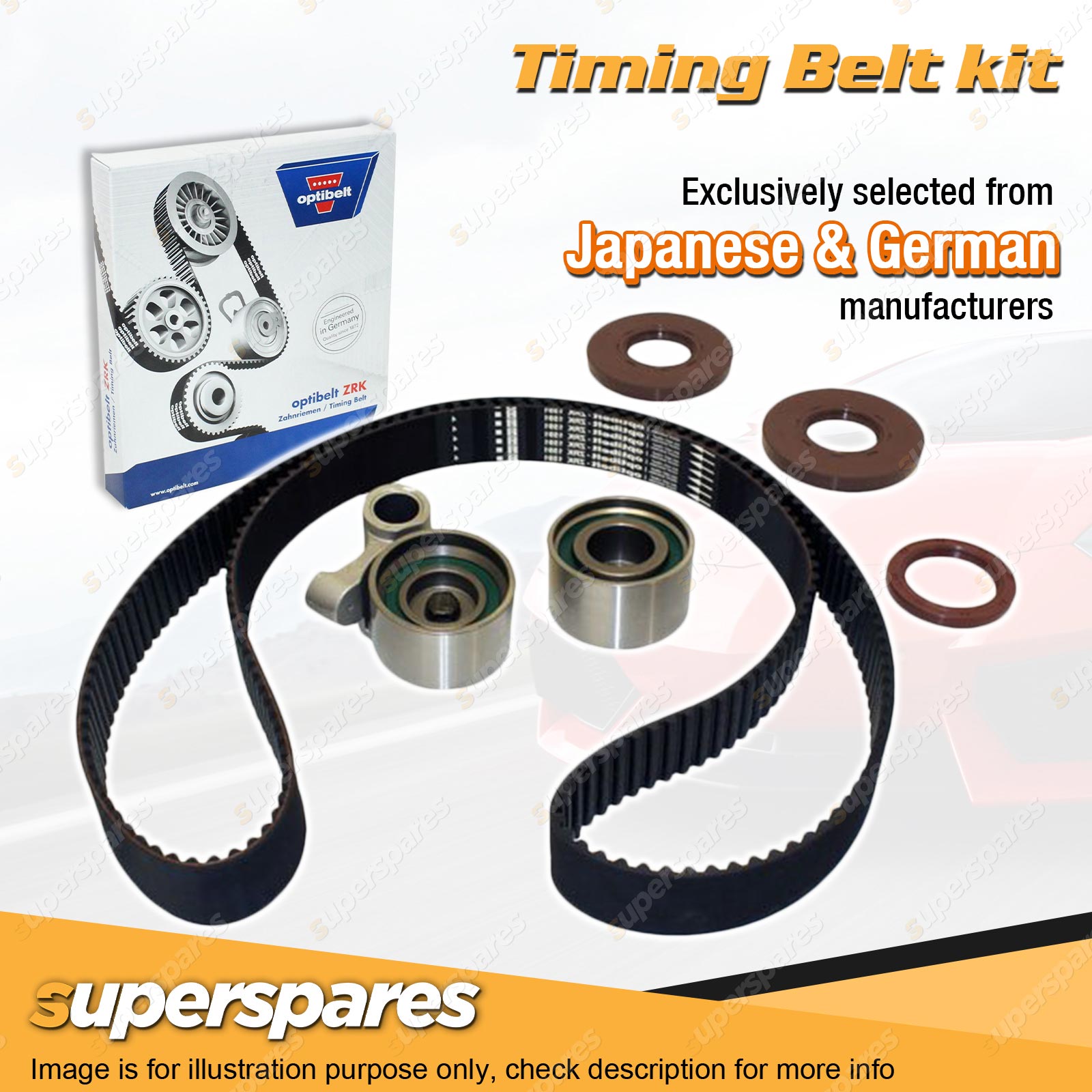 | Timing Belt: All of superspares timing belt kits utilize a genuine Optibelt brand belt. Optibelt has long since made a name for itself as a reliable partner to the international automotive industry. The engineers of the German family-run business invest a lot of time and even more energy into the research of materials. |