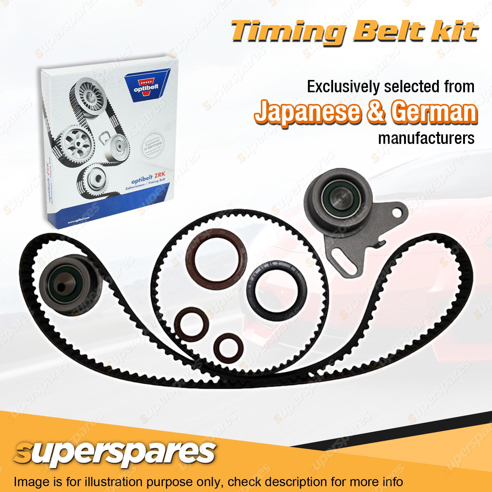 | Timing Belt: All of superspares timing belt kits utilize a genuine Optibelt brand belt. Optibelt has long since made a name for itself as a reliable partner to the international automotive industry. The engineers of the German family-run business invest a lot of time and even more energy into the research of materials. |